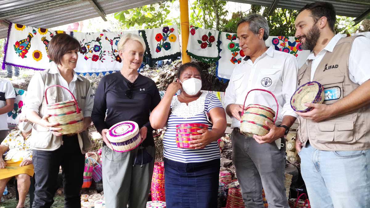 3 / 10Tania Goosens, directora del PMA (WFP) Guatemala; la embajadora Cindy McCain; Gloria Díaz, líder del grupo de Mujeres Progresistas de Plan del Jocote junto a .