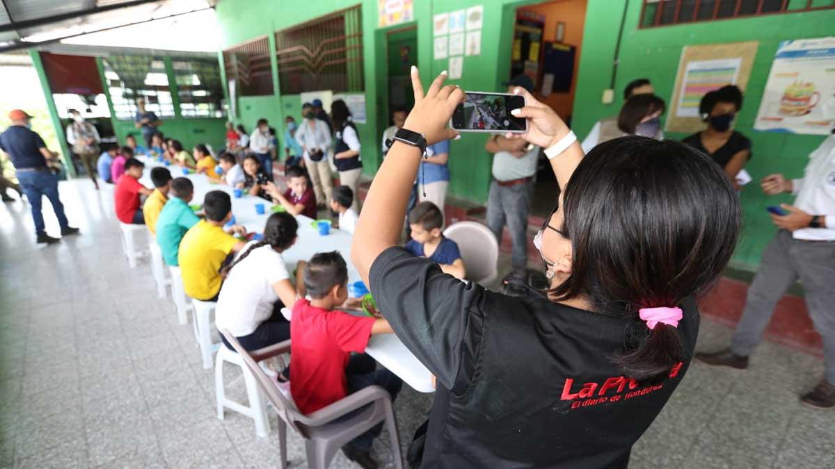 8 / 10Los niños de la escuela de la comunidad de Veguitas, San Juan Ermita, Chiquimula, Guatemala reciben la merienda elaborada por sus mamás. LA PRENSA es parte del recorrido de la embajadora McCain.