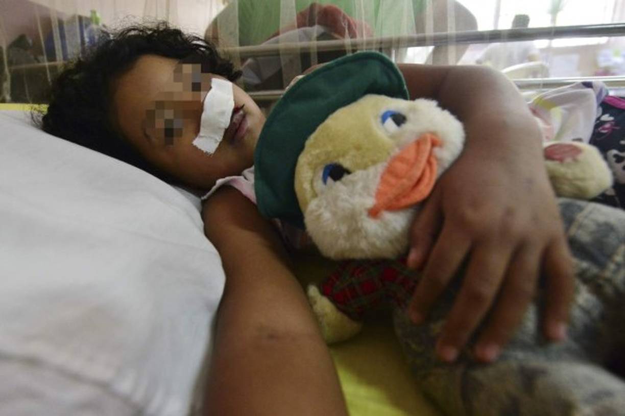 7 / 13Una de las más graves es Crista Alexandra Pineda, de siete años, quien está al cuidado de su abuela, Josefina Velásquez, de 59. Tiene un esparadrapo pegado en la nariz para contener la hemorragia con la que ingresó el domingo pasado. -