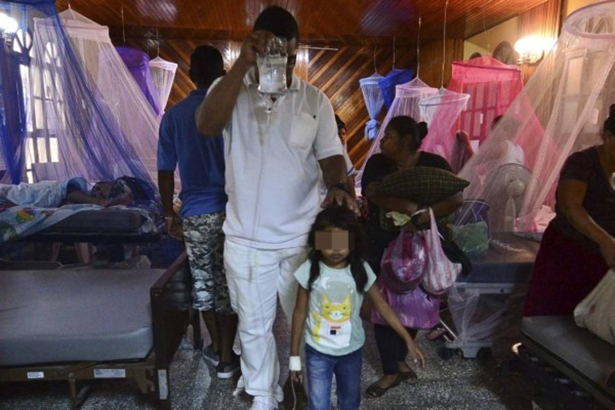 8 / 13El Aedes aegypti mantiene postrada a esta niña en el hospital de La Paz, Honduras. 'Estamos colapsados, tuvimos que habilitar hasta la capilla, los pasillos y suspender las intervenciones quirúrgicas selectivas' por la emergencia, dice a la AFP el portavoz del hospital, Marco Antonio Rodas. -