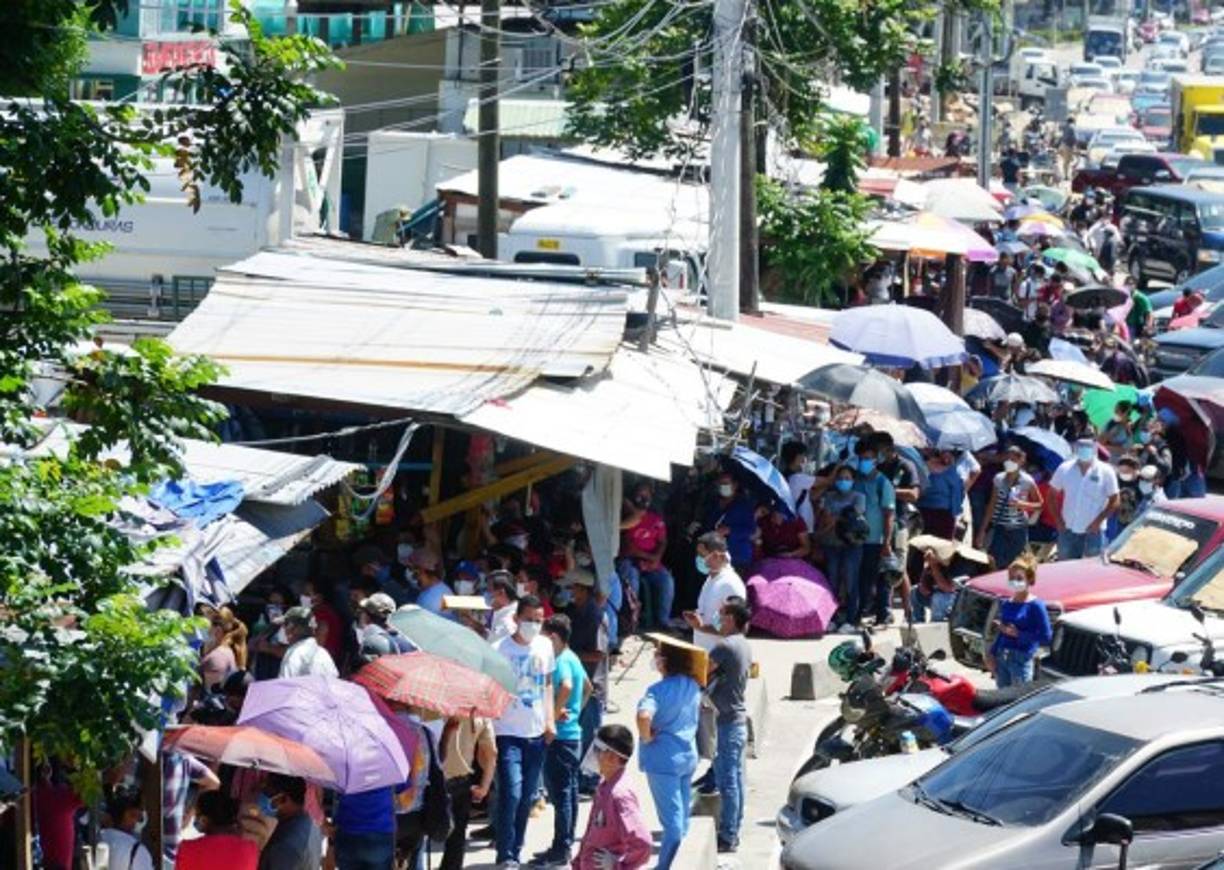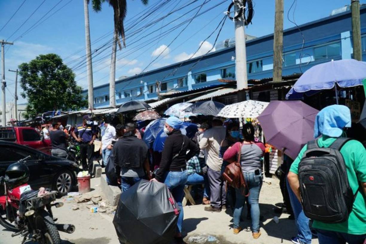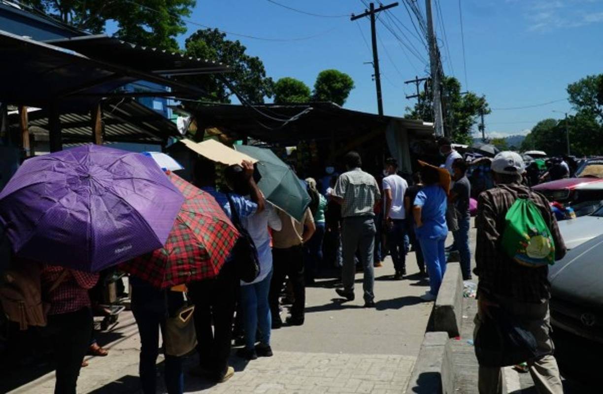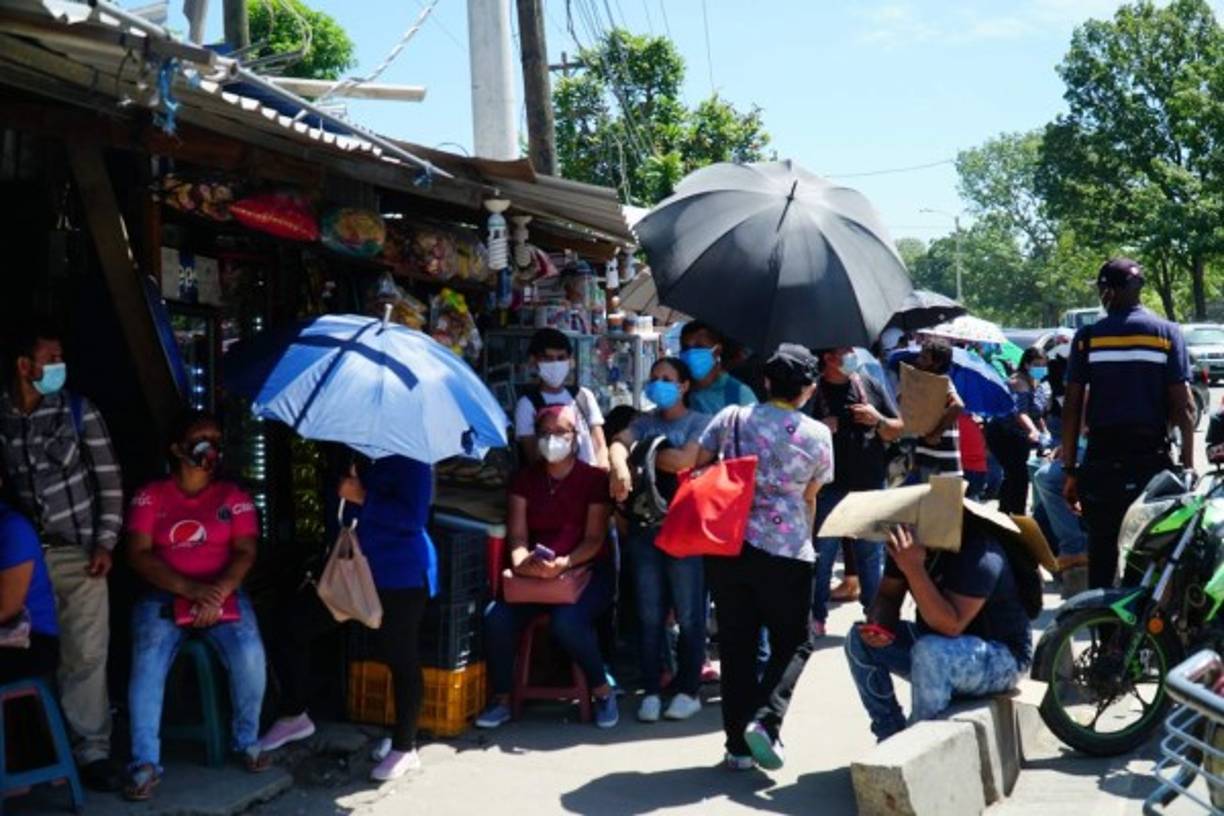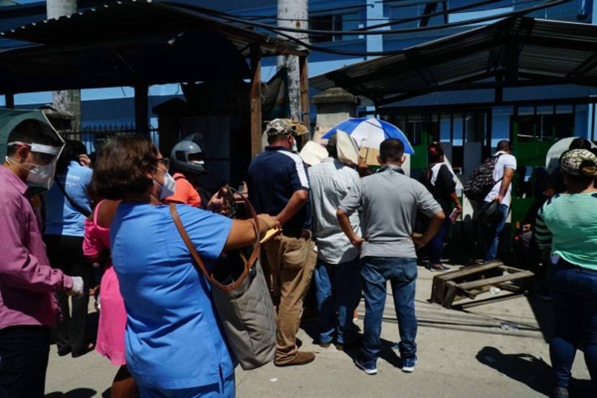 Cientos de derechohabientes del Seguro Social en San Pedro Sula hacen enormes filas para reclamar su hoja de incapacidad.