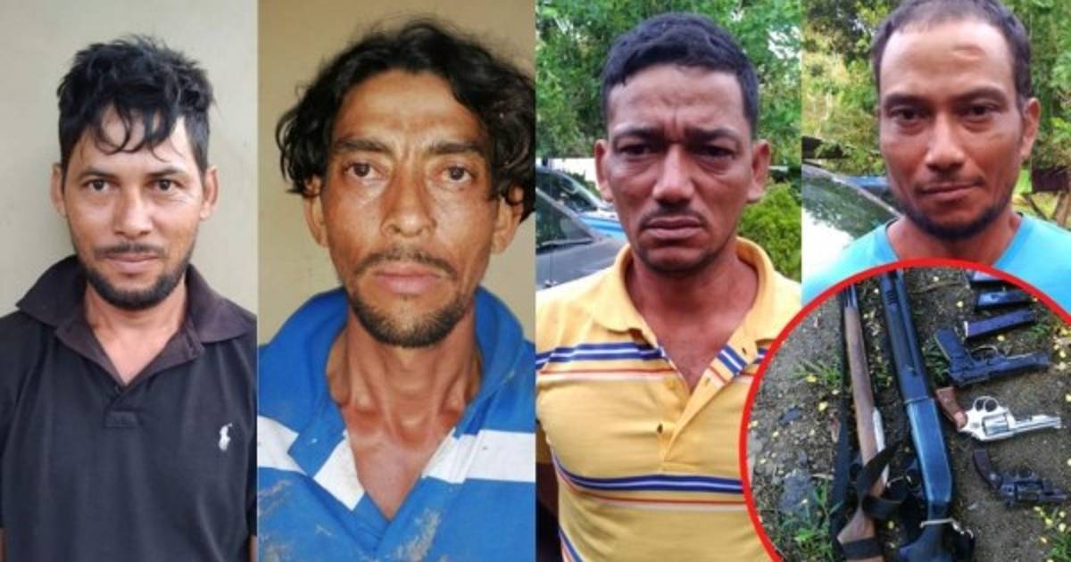2 / 7Los cuatro detenidos tiene órdenes de capturas pendientes, por homicidio, tráfico de drogas, posesión ilegal de armas de fuego y otros delitos, según describe el ente policial. Se les decomisaron varias armas de fuego, al verse sorprendidos por agentes investigativos en la remota comunidad. -