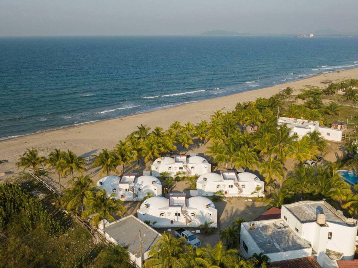 Domos by San Juan Mar en Tela, Atlántida, es un complejo conformado por cuatro domos que cuentan con cocina equipada, dos habitaciones dobles con camas queen, dos baños completos y piscina.