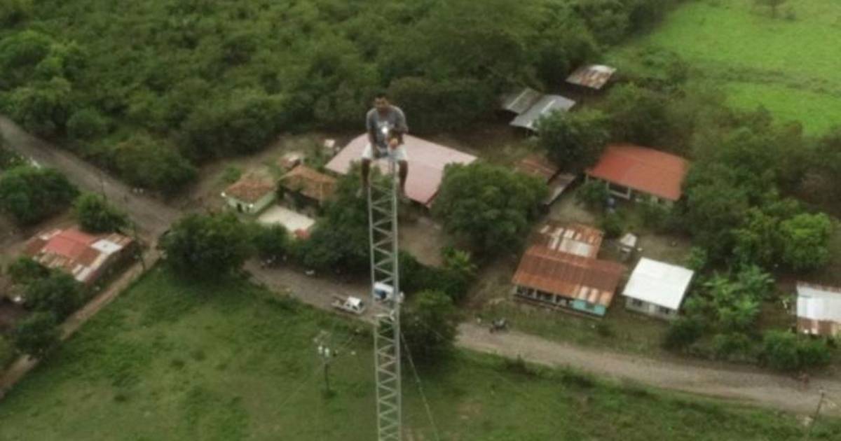 1 / 10La comunidad de El Carril, en Olanchito, Yoro, no salía del asombro. Un hombre que padece problemas psiquiátricos y epilepsia estaba subido en una antena de transmisión de radio.