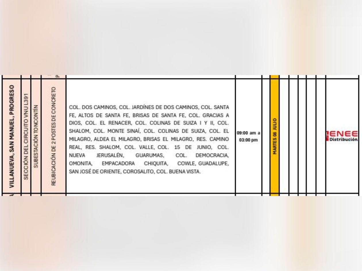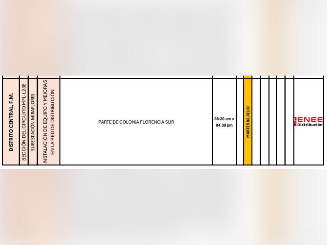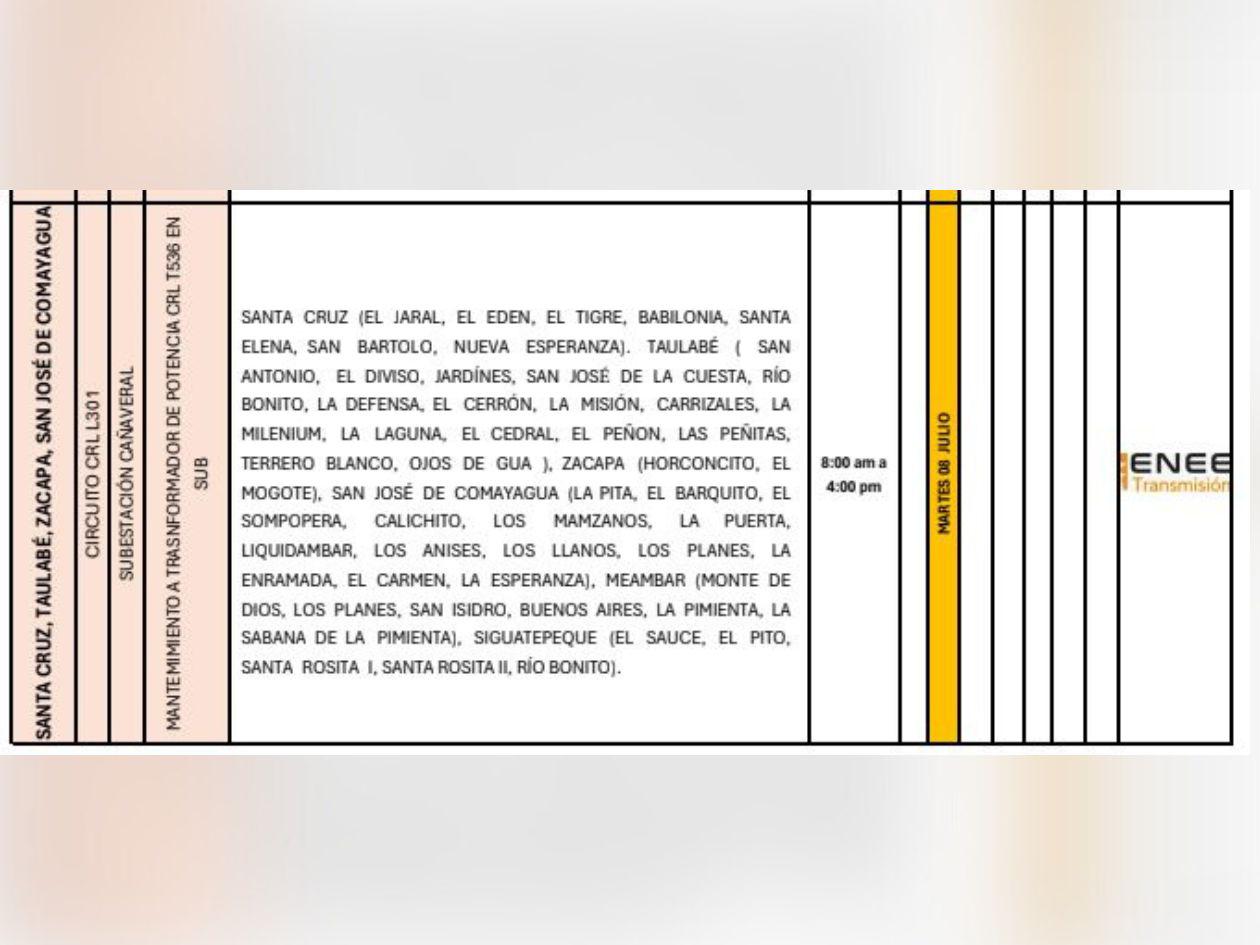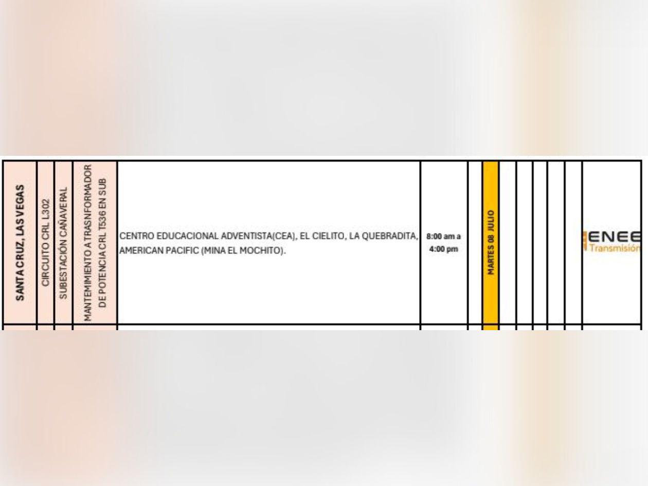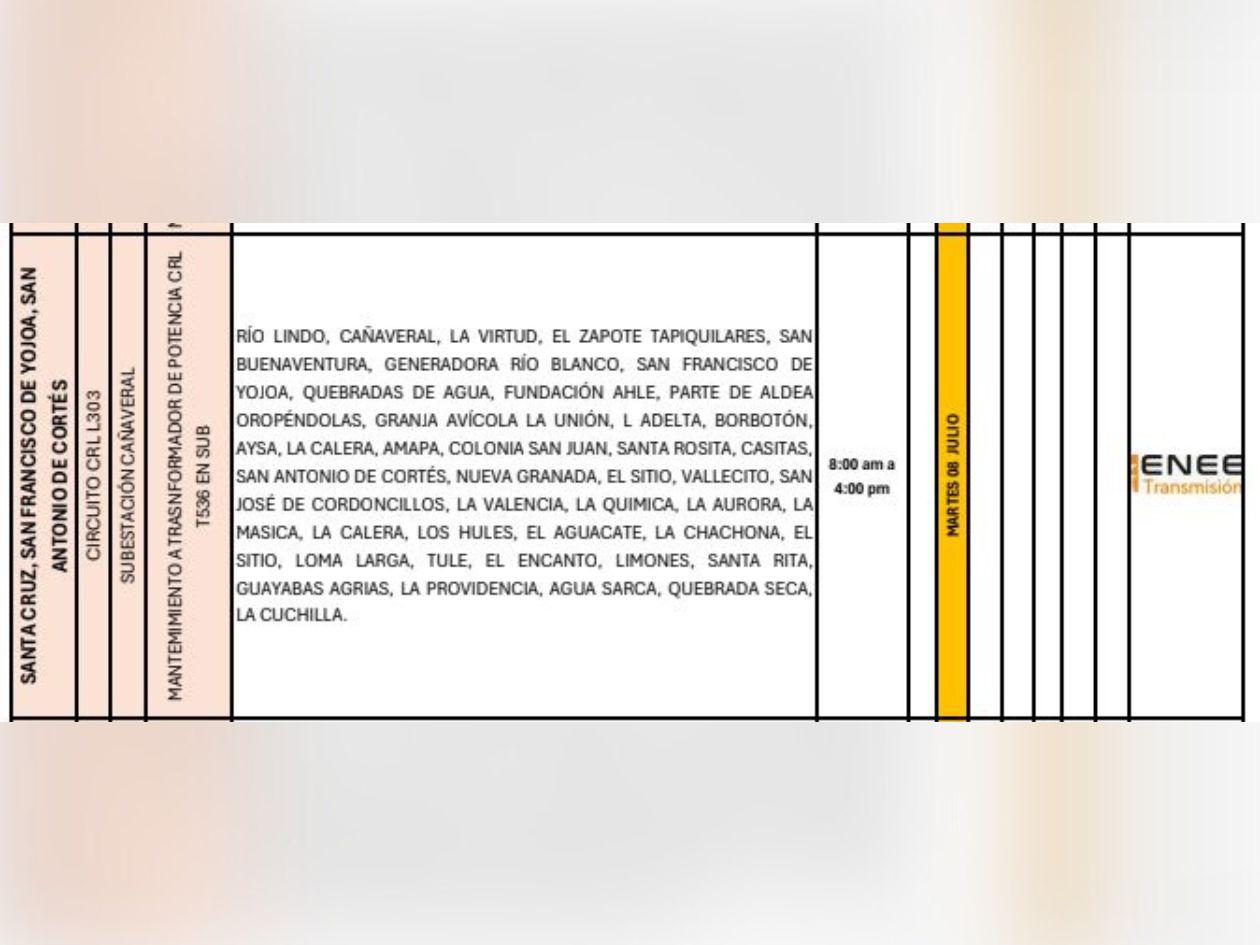 La Empresa Nacional de Energía Eléctrica (Enee) programó masivos apagones para este martes 8 de julio de 2025 en Honduras.