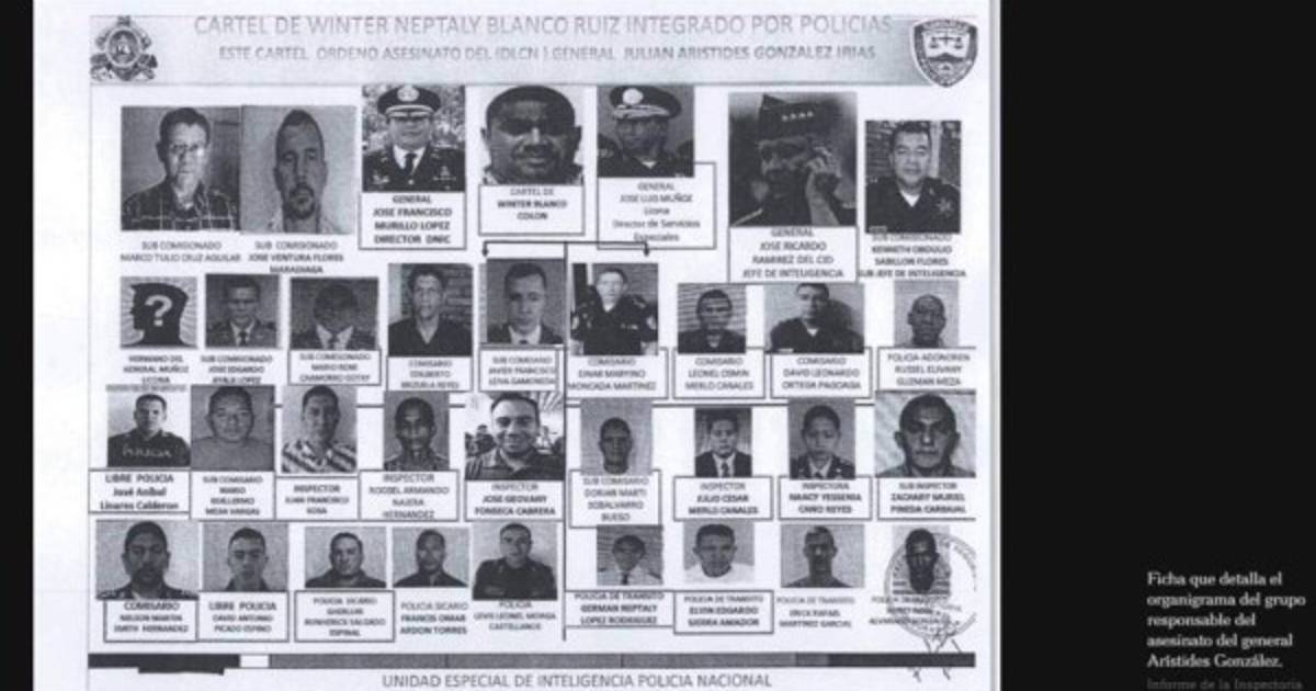 1 / 29Ficha que detalla el organigrama del grupo que participó en la muerte de Julián Arístides González, según publicación de The New York Times atribuido a un informe de la Inspectoría General de la Policía de Honduras. -