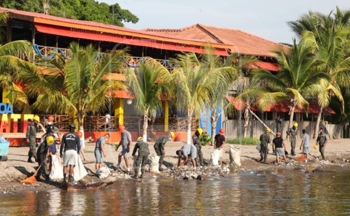 13 / 15Pobladores de Comayagua también se unieron a las labores de limpieza, ya que muchos de ellos viven de la pesca artesanal y el turismo. -