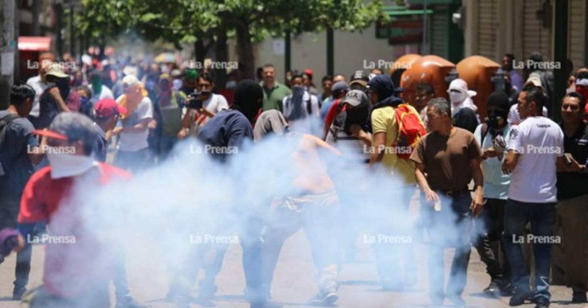 1 / 11Por tercer día consecutivo hubo disturbios en el centro de la capital hondureña, los de este miércoles ocurrieron más de una hora después de que finalizó la movilización de los obreros que salieron a las calles en el Día Internacional del Trabajador. Fotos: Andro Rodríguez -
