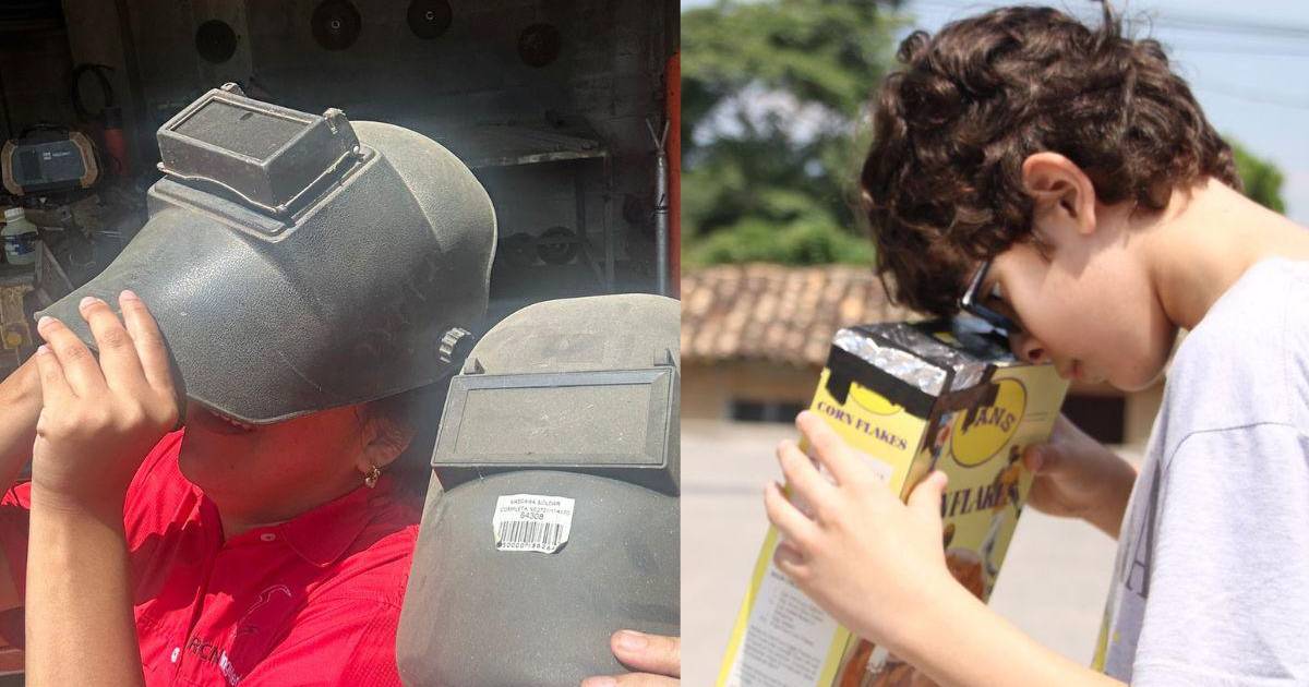 Los hondureños han usado su ingenio para ver el eclipse solar anular de este sábado, desde caretas de soldador, hasta cajas de cereal...