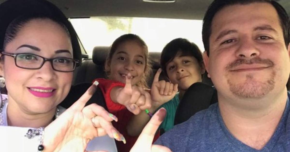 4 / 14Familia Caballero muestra su dedo manchado luego de ejercer el voto en El Progreso, Yoro. -