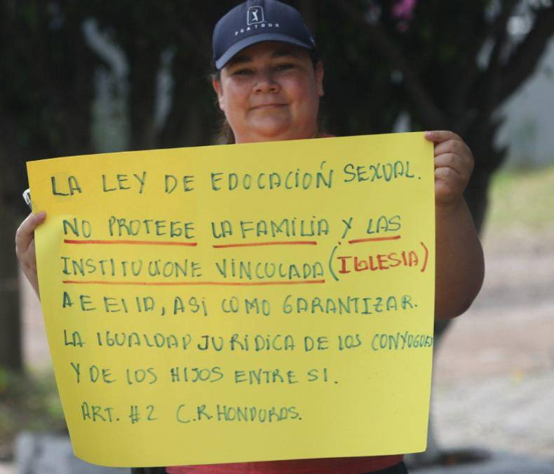 15 / 17“Venimos en familia y nuestra iglesia para pedir que no se rompan nuestros valores a través de esta ley, porque trastoca lo que Dios ha diseñado”, dijo en Tegucigalpa una madre que pidió a la presidenta Castro que no sancione la normativa.