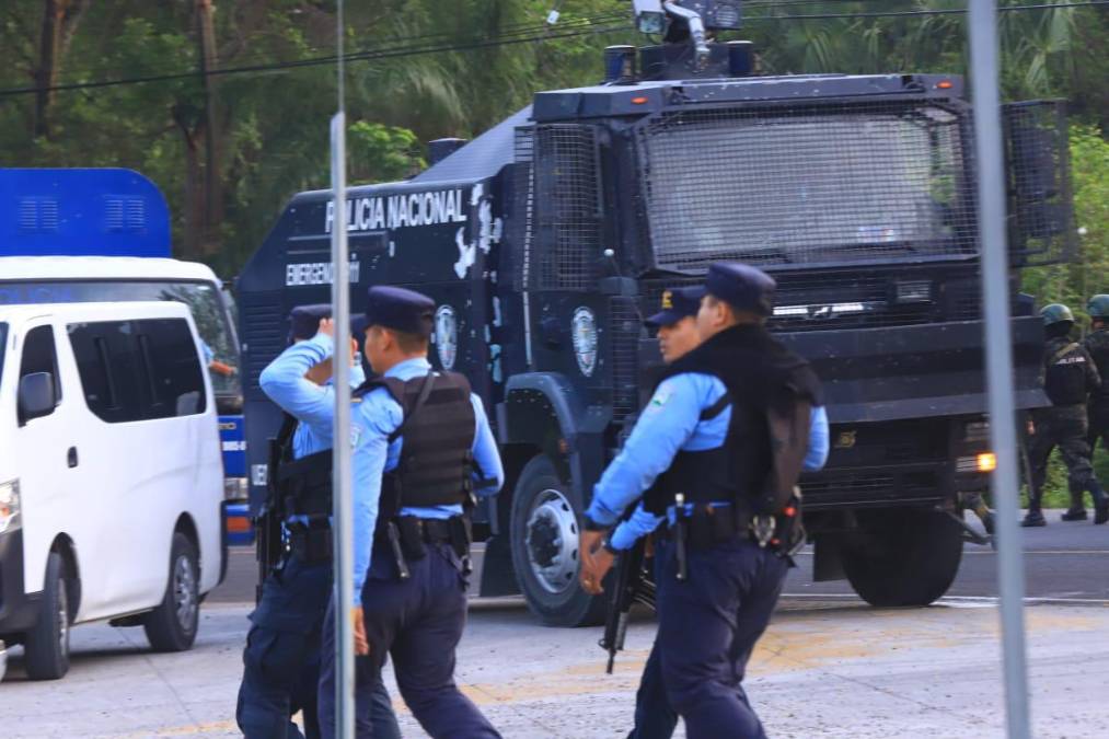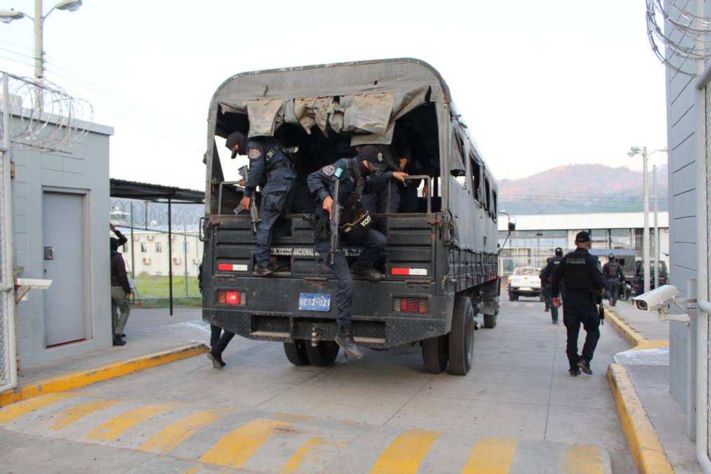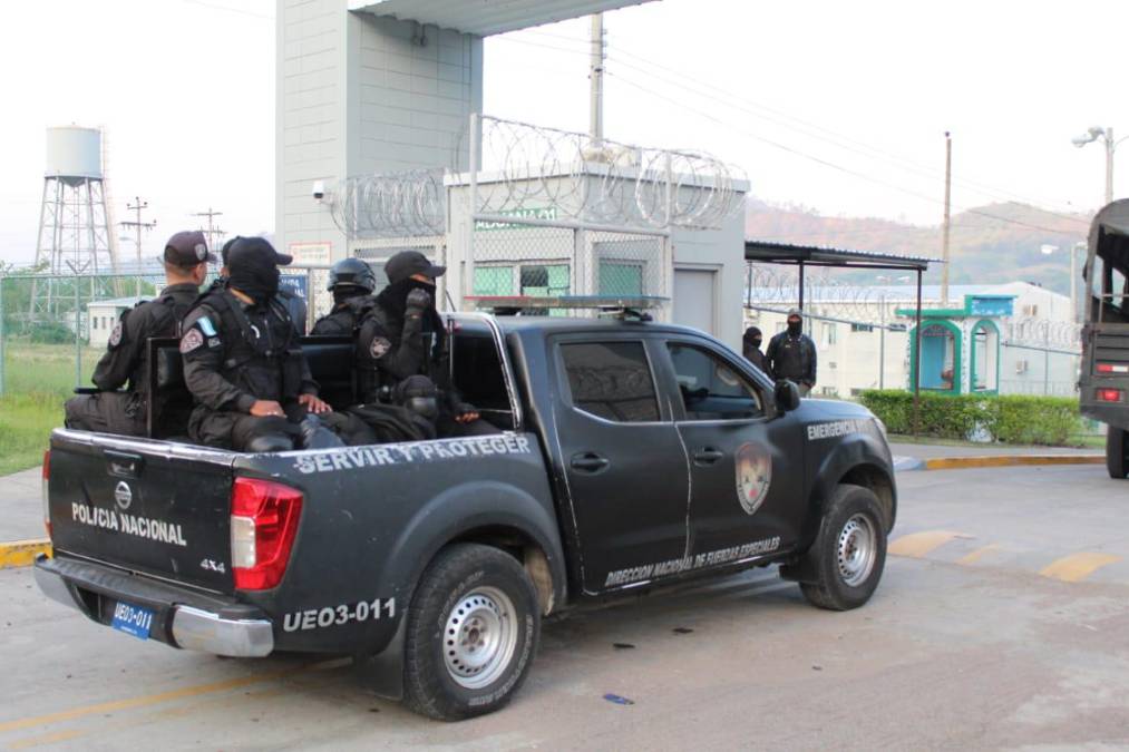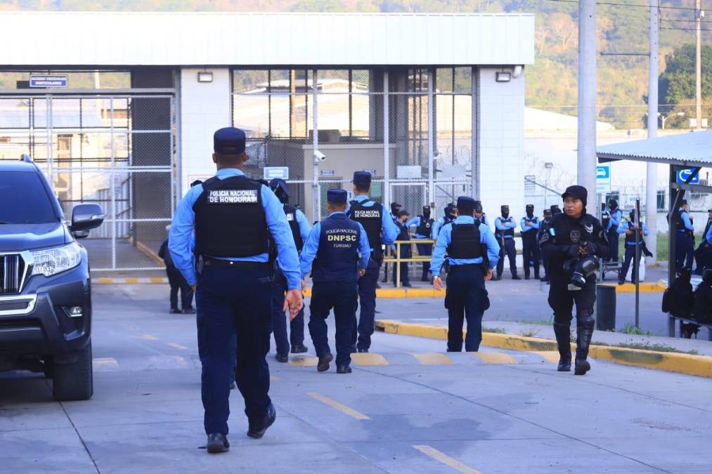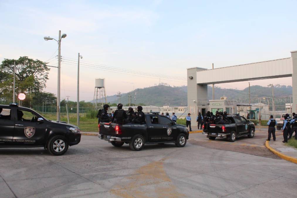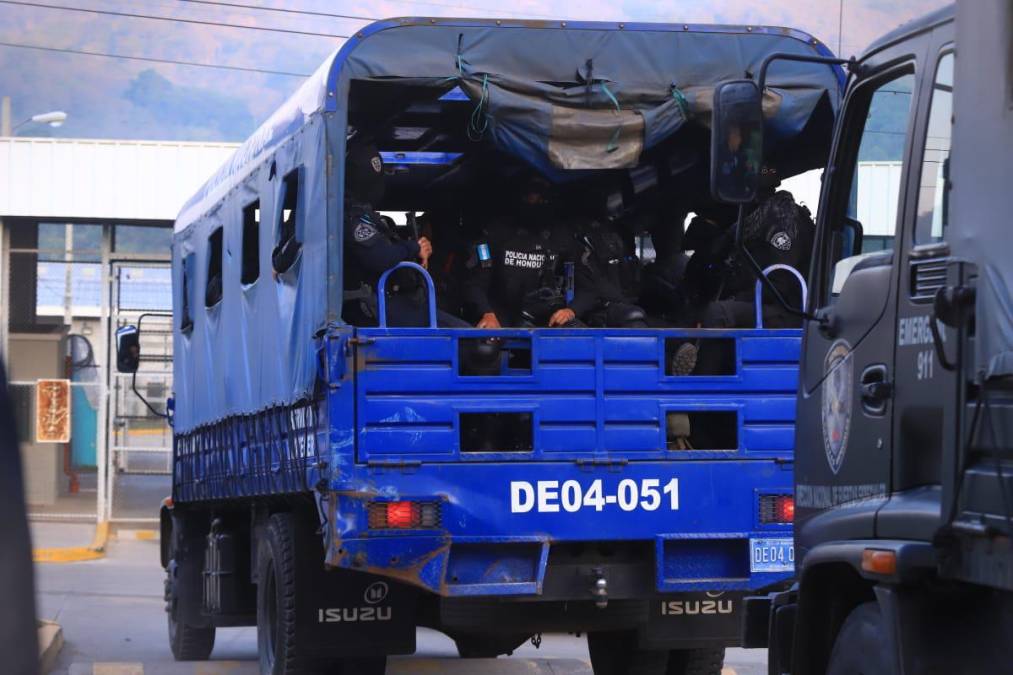 2 / 20Este martes, un enorme contingente policial se desplazó hasta el centro penal santabarbarense para comenzar la intervención, anunciada desde abril por la presidenta Xiomara Castro.