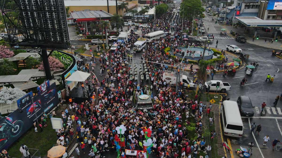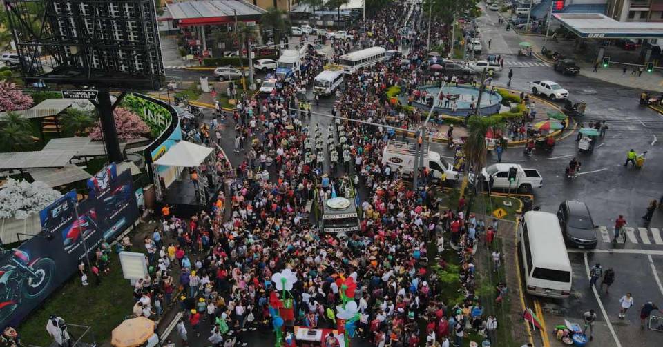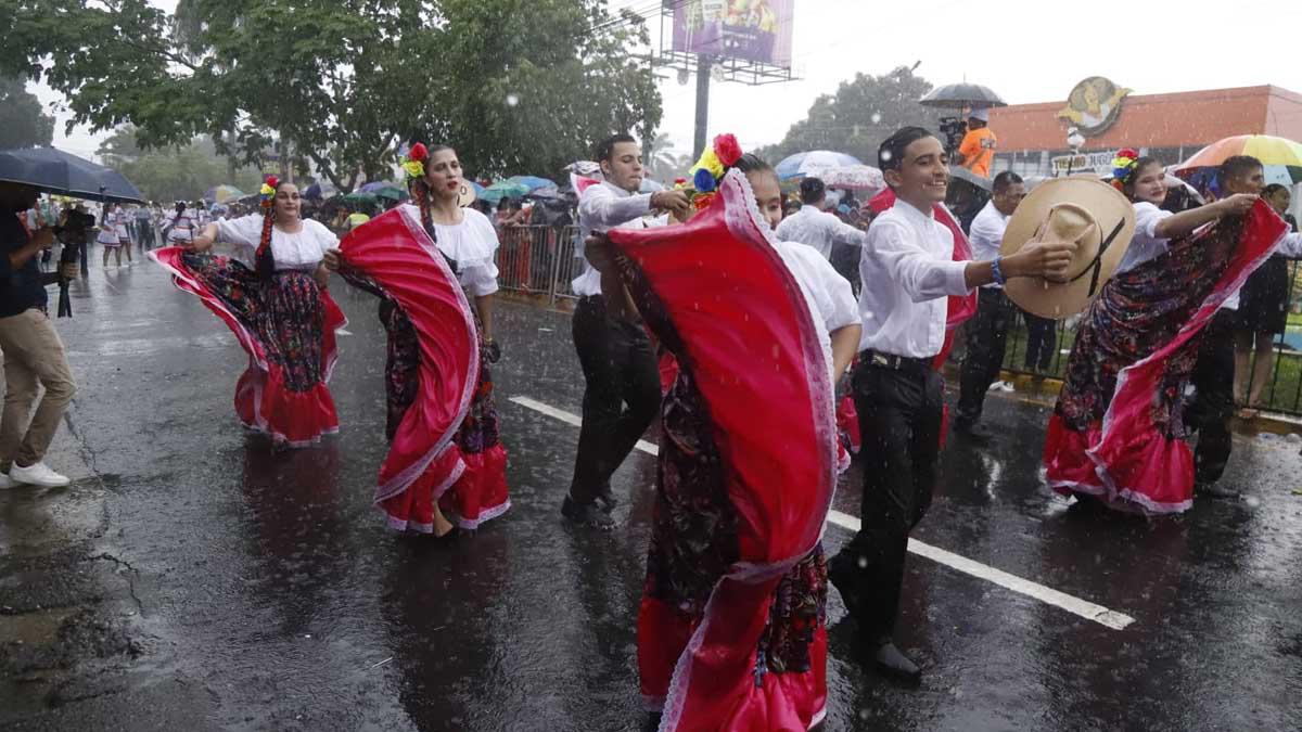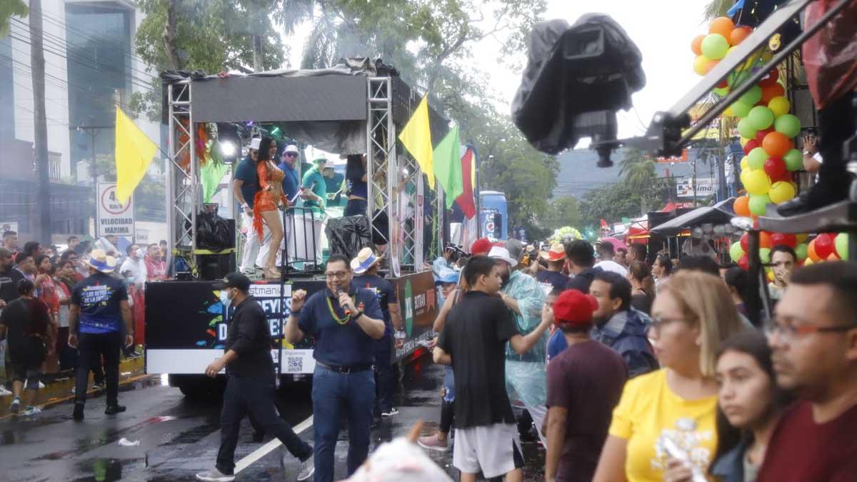 ¡Imparable! Lluvia sorprendió a sampedranos en el desfile de carrozas