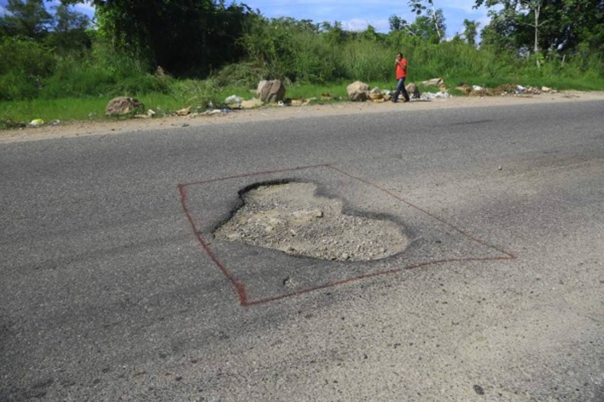 2 / 23Las personas que a diario transitan por la carretera entre Copán y San Pedro Sula describen el trayecto como la luna, ya que hay más baches que asfalto.