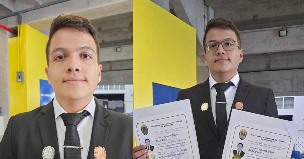 El brillante joven Eduard Jared Ávila celebró con orgullo este sábado su doble titulación en la Universidad Nacional Autónoma de Honduras (UNAH), alcanzando además reconocimientos de excelencia académica.