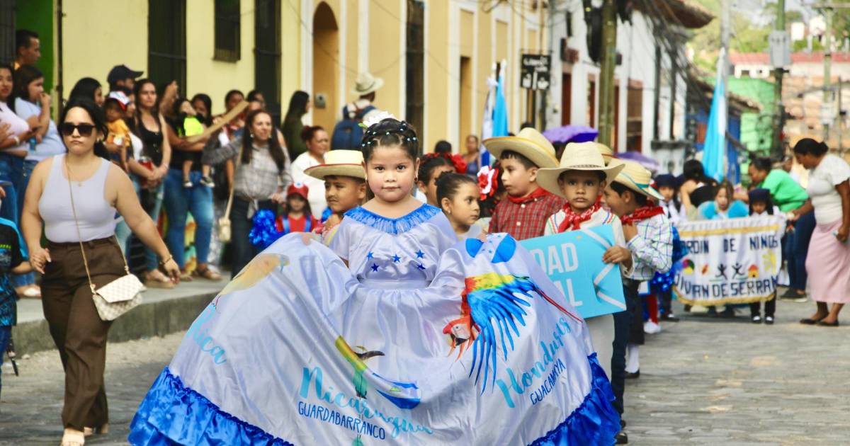1 / 12El espíritu patriótico envolvió las calles de Santa Rosa de Copán en un desfile protagonizado por los niños del nivel de prebásica, quienes se unieron para celebrar el 202 aniversario de la independencia de Honduras.