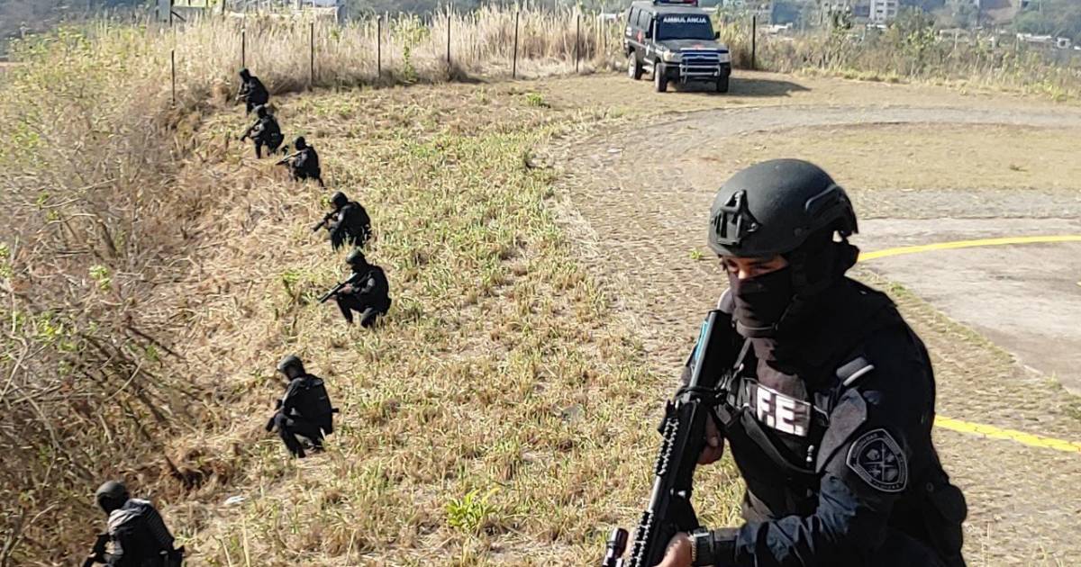 1 / 8Agentes de las Fuerzas Especiales hondureñas se han posicionados en varios puntos para custodiar y vigilar el traslado del expresidente Juan Orlando Hernández desde el Comando Cobras hasta la base aérea Hernán Acosta Mejía. Fotografías: Policía Nacional / Redes Sociales