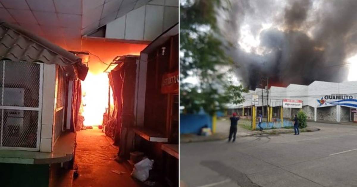 Puestos destruidos por incendio en el histórico Mercado Guamilito