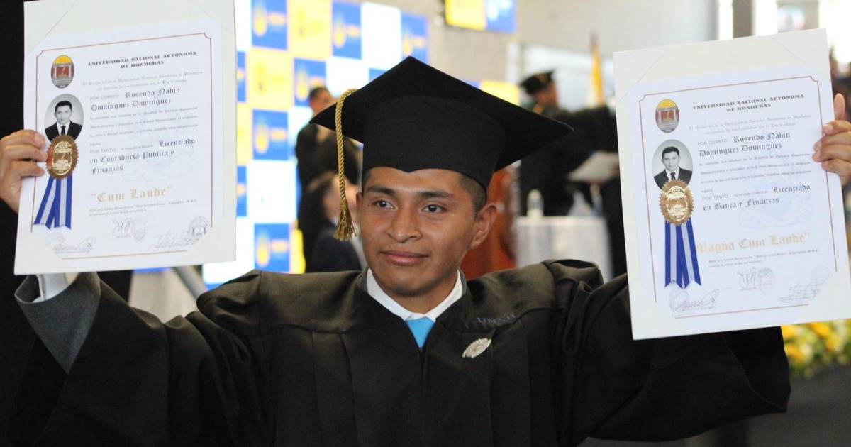 Originario de Intibucá, Rosendo Domínguez se graduó con honores y destacó entre los más de 2,000 egresados que culminaron sus estudios en la Universidad Nacional Autónoma de Honduras.