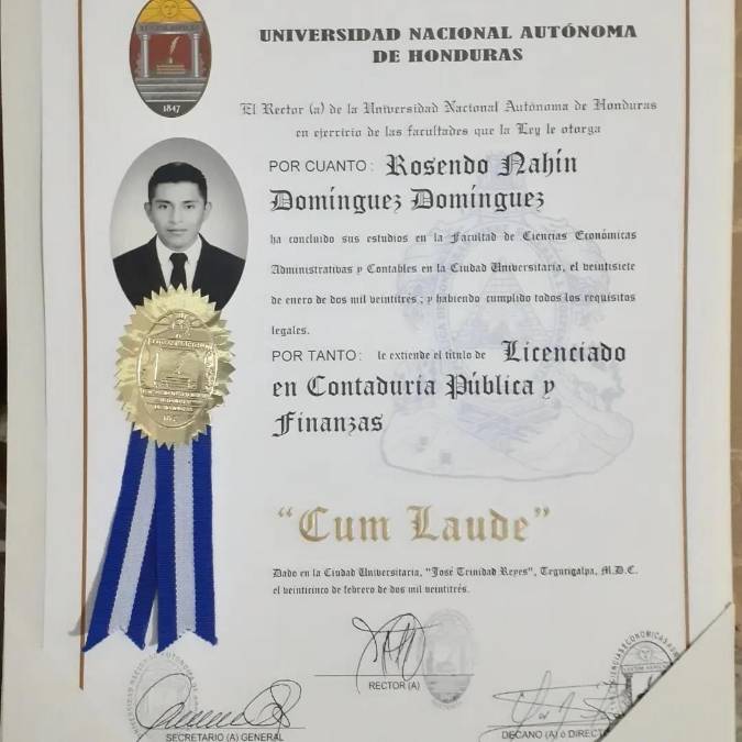 1 / 12El hondureño Rosendo Nahín Domínguez Domínguez se graduó el martes (28 de marzo de 2023) con honores de dos licenciaturas en la Universidad Nacional Autónoma de Honduras (Unah).