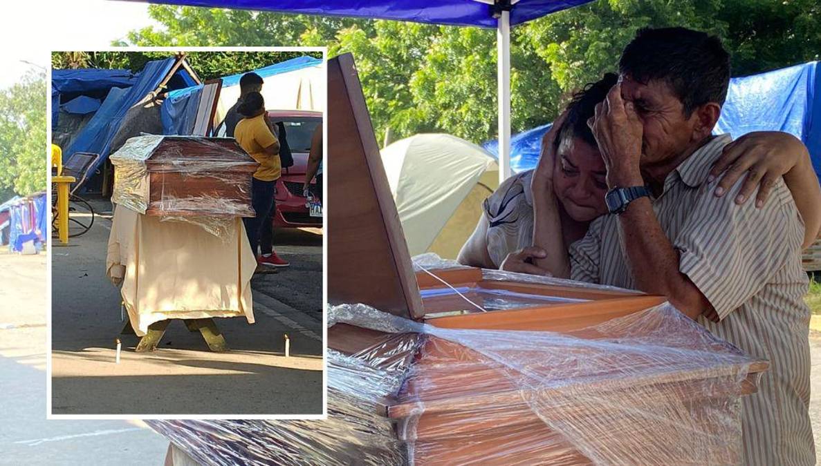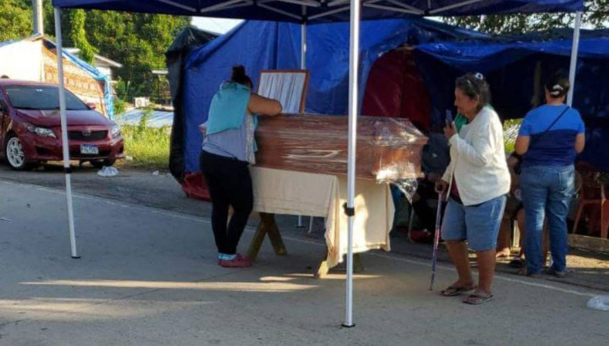 1 / 12Una familia hondureña veló los restos de una mujer en el bulevar del Este, que conduce de La Lima a El Progreso, Yoro.