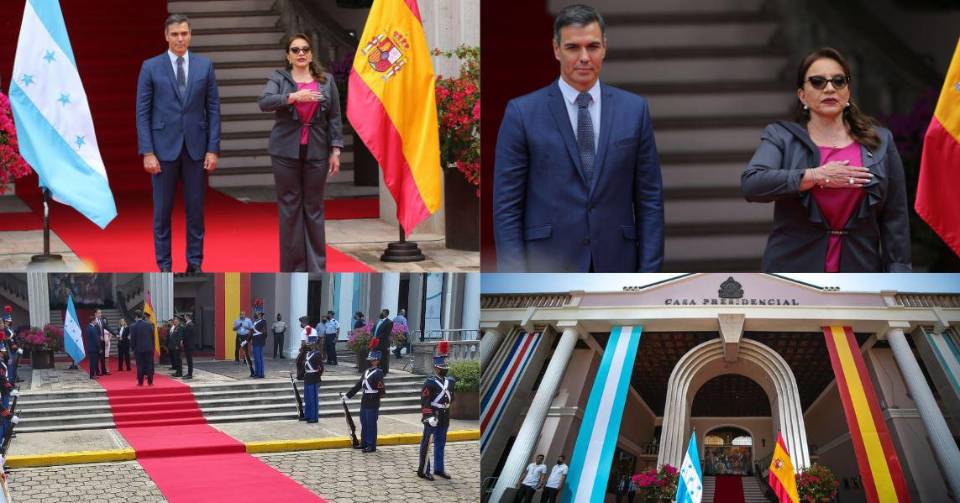 Xiomara Castro recibe con honores a Pedro Sánchez en Casa Presidencial (FOTOS)