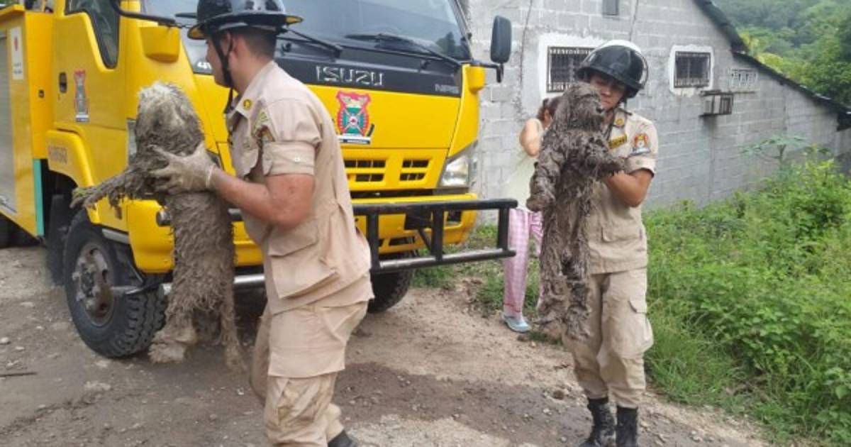 2 / 5Los perros se encontraban en un fango atrapados y fueron rescatados con vida, informó esta mañana el Cuerpo de Bomberos de Honduras. -