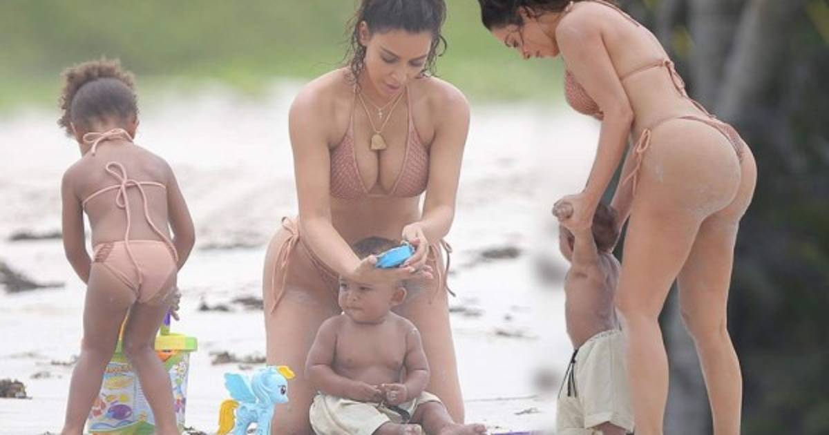 8 / 9Kim estuvo apapachando a los dos nenes que ha procreado con su marido Kanye West (aunque el rapero no los acompañó en el paseo) y se dedicó a enseñarle a su hijo las linduras de la vida junto al mar. -
