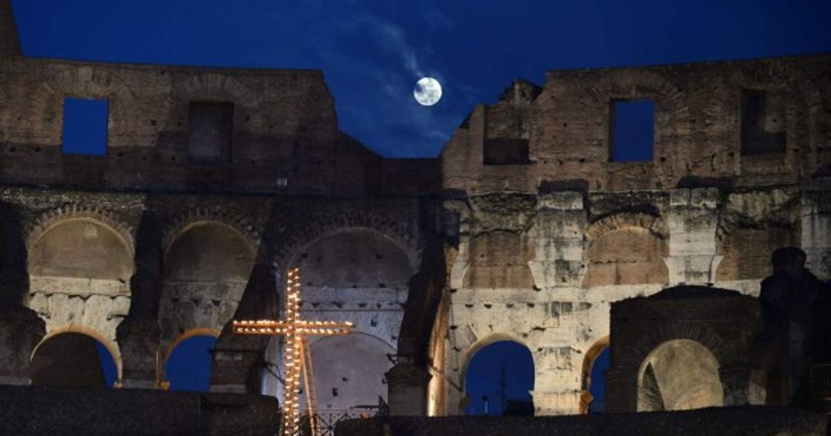 1 / 8El eclipse más corto del siglo fue muy inusual ya que la Luna apenas rozó la umbra, la sombra interior de la Tierra, brevemente. Así lo vieron desde el Coliseo Romano en Italia. -