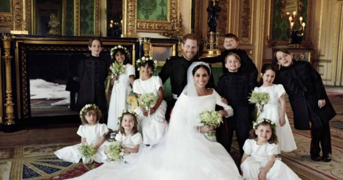 Las fotografías muestran a los duques de Sussex en el castillo de Windsor, rodeados de sus pajes, entre ellos el príncipe George y la princesa Charlotte. También aparecen la reina Isabel II, el duque de Edimburgo, los duques de Cambridge, el príncipe Carlos y Doria Ragland. -