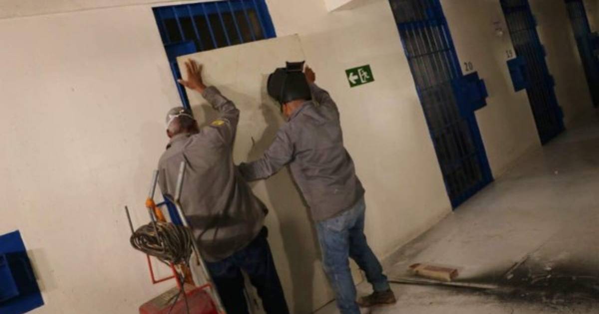4 / 15La orden fue ratificada por Bukele que compartió imágenes en redes sociales del sellamiento de las celdas de los pandilleros con enormes placas de metal. -