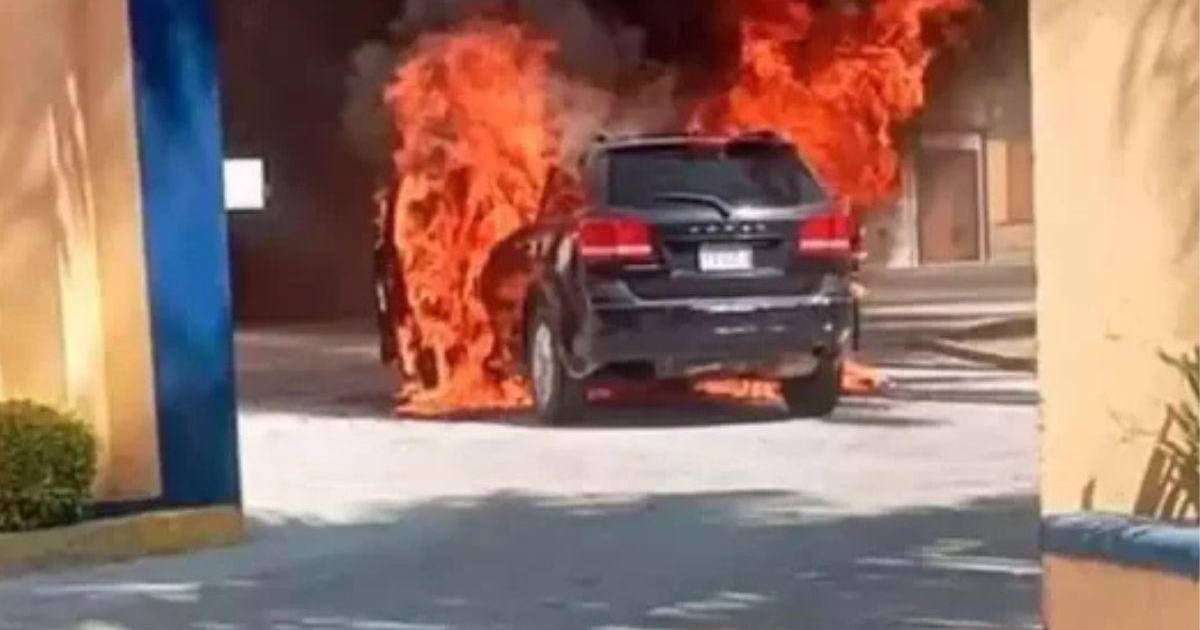 Un insólito incidente se ha vuelto viral en las diversas redes sociales, cuando una camioneta negra marca Dodger se incendió en llamas justo en el momento en que sus ocupantes ingresaban a un reconocido motel.