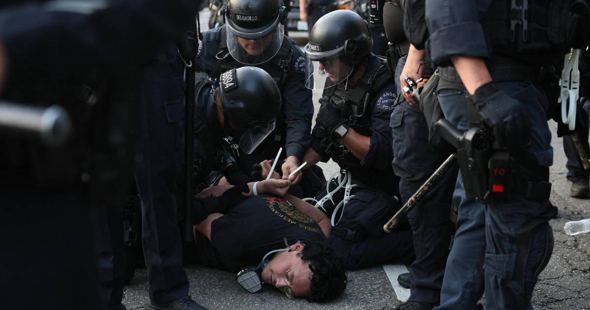 Un manifestante es arrestado durante las protestas provocadas por las redadas migratorias en Los Ángeles.