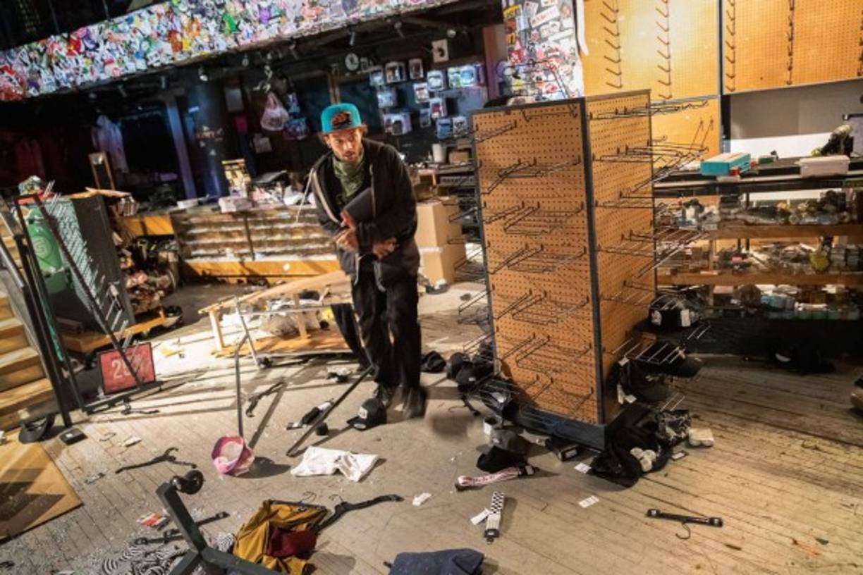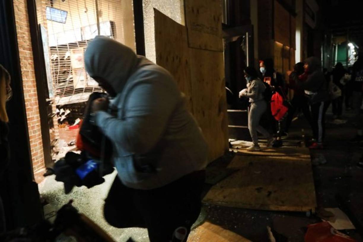 4 / 13La enorme tienda de Microsoft de la lujosa Quinta Avenida estaba siendo saqueada por jóvenes manifestantes pese a los grandes tablones de madera colocados en las puertas del establecimiento para tratar de evitar un ataque. -