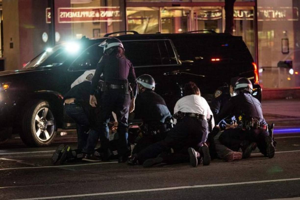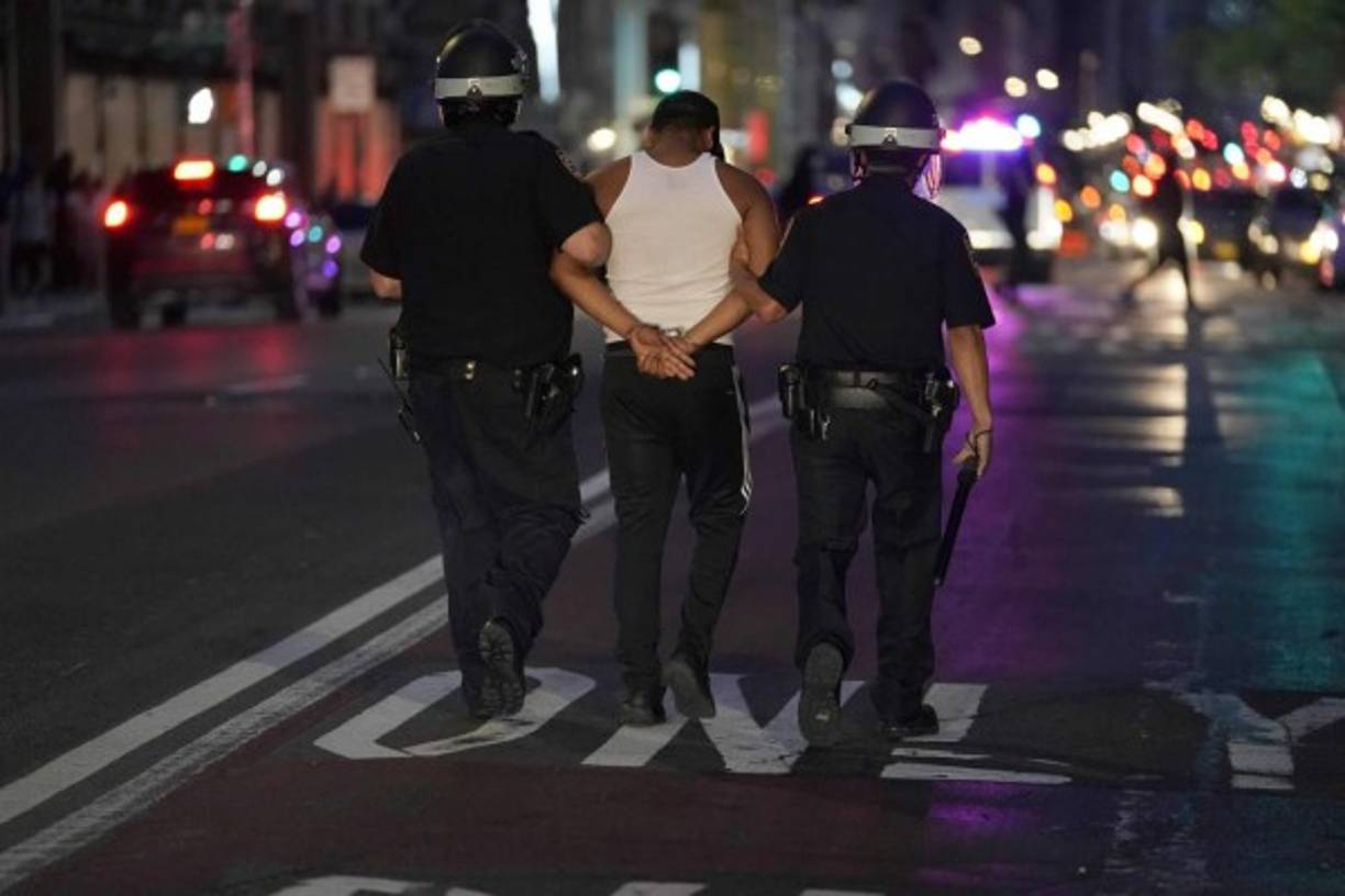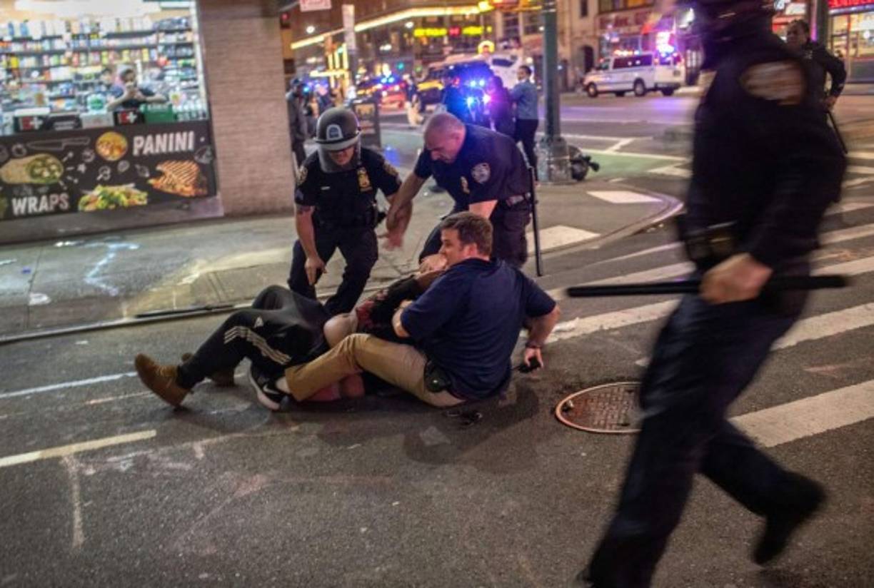 2 / 13Tras caer el sol, ya se podían ver en pleno centro de Manhattan tensos encontronazos entre los manifestantes y la policía en la Quinta Avenida, una de las principales arterias de la ciudad. Eso sí, en algunas ocasiones, grupos de manifestantes intentaban frenar a lo saqueadores, con poco éxito. -