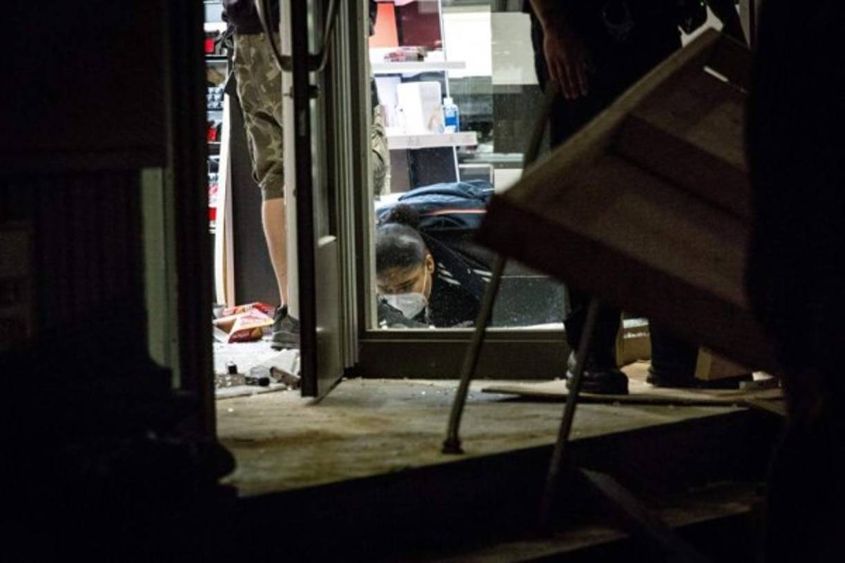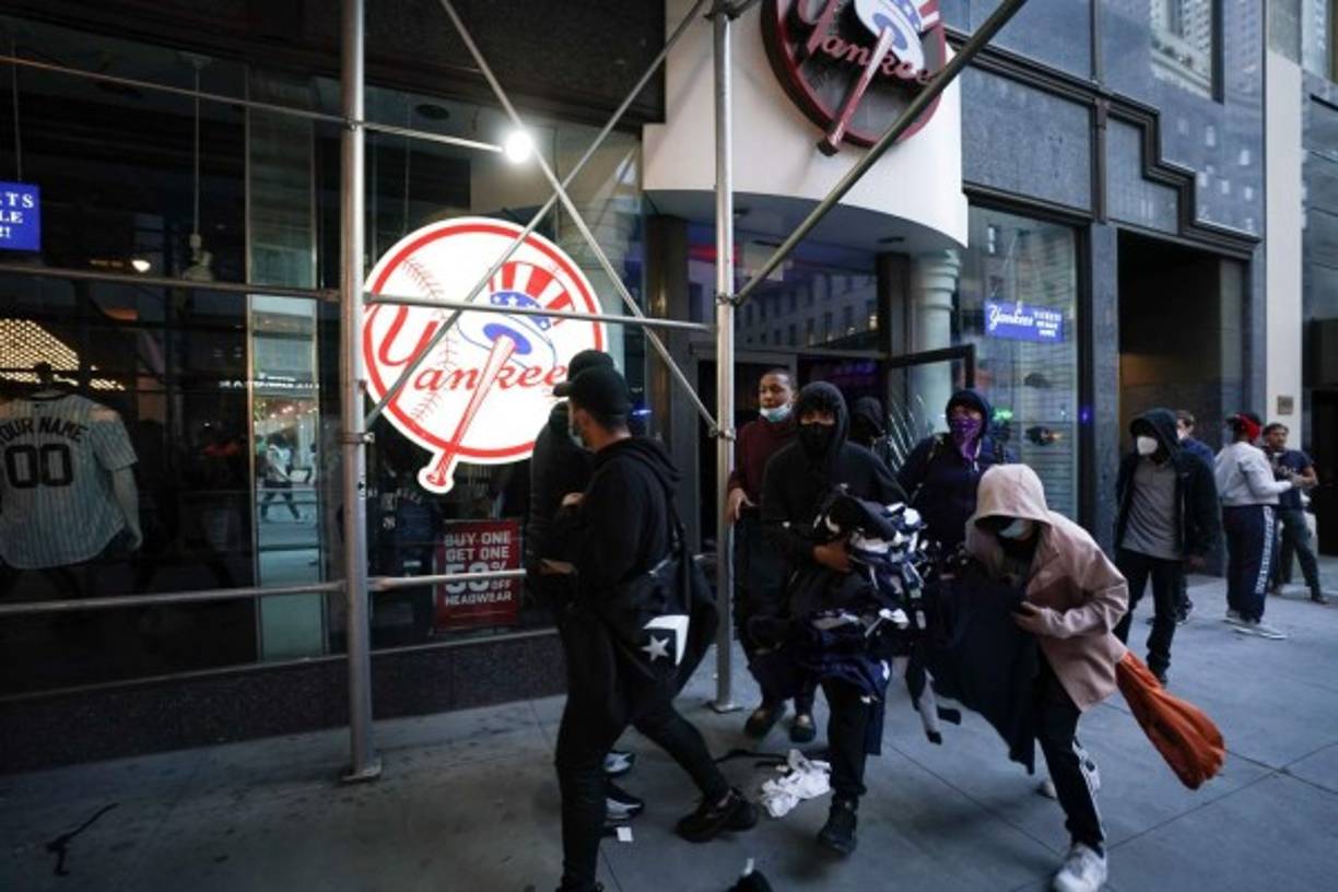 5 / 13Media hora antes del toque de queda, la situación se agravaba en el centro de Manhattan, con saqueos en el centro comercial Macy’s y en una tienda de la operadora móvil Verizon. -