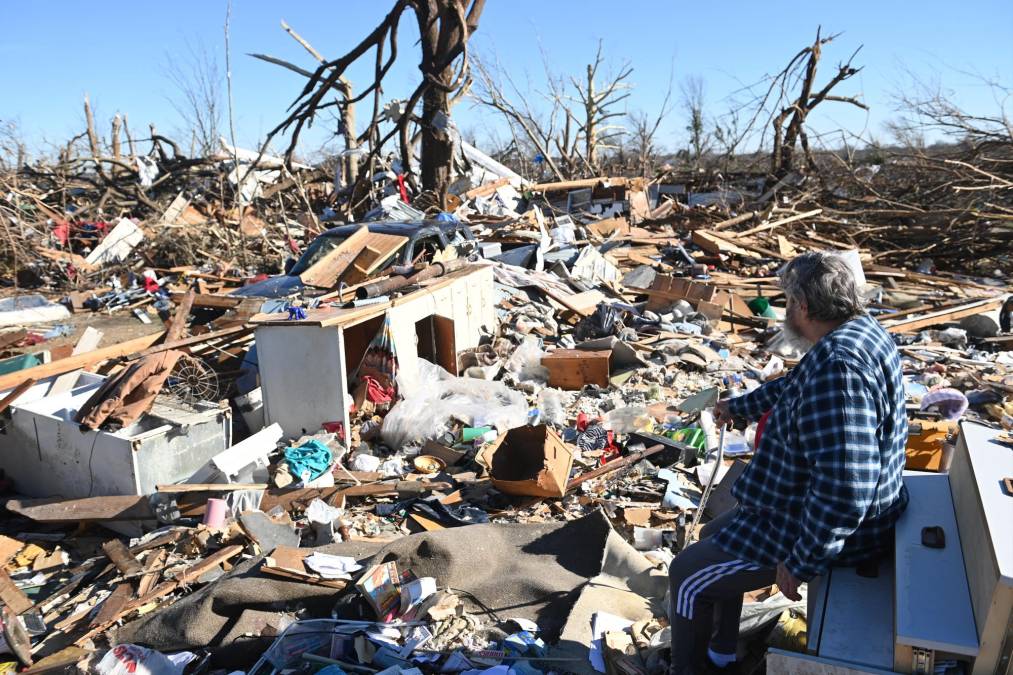 12 / 13En Kentucky están desplegados 300 soldados de la Guardia Nacional, indicó el gobernador, que destacó que los militares buscan casa por casa y dan “certeza” a los sobrevivientes de la noche del viernes. -