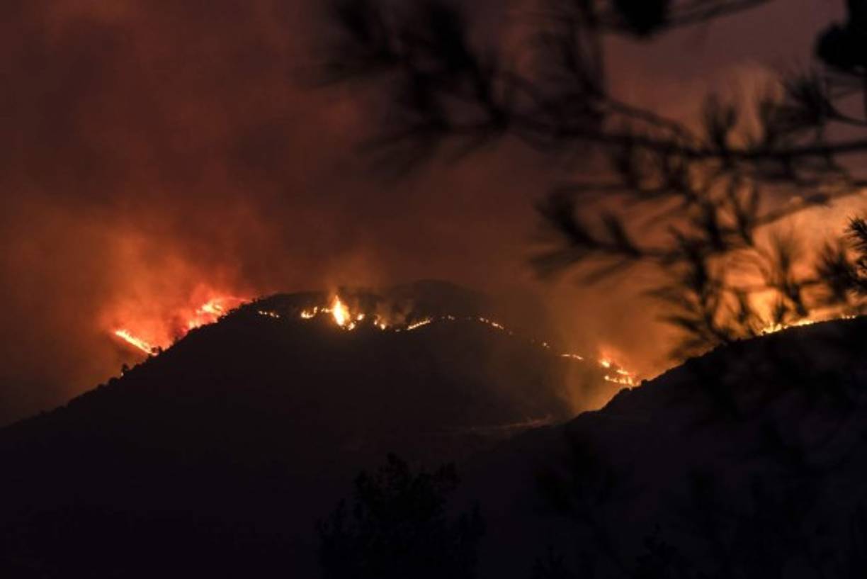 5 / 9Desde que se declaró el incendio el sábado por la tarde, las llamas han arrasado 55 kilómetros cuadrados de terreno forestal en el sur de la isla y han llevado a las autoridades a evacuar varias pequeñas poblaciones, donde decenas de propiedades se han visto afectadas. -