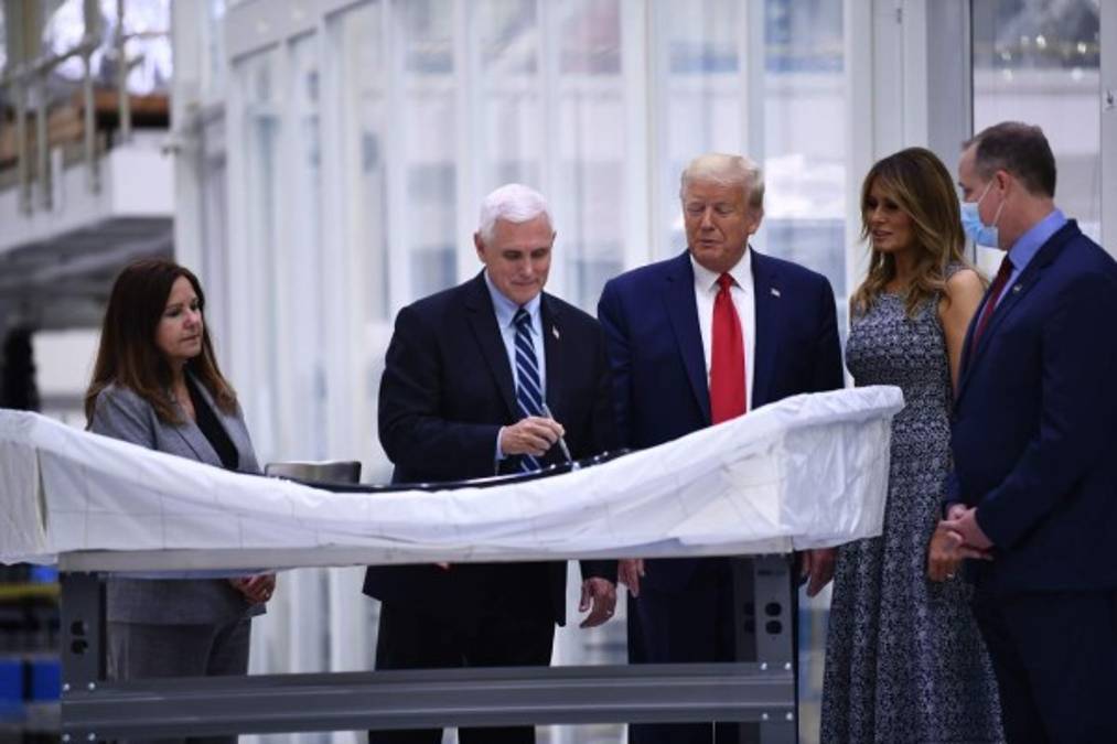 6 / 9Trump y la primera dama, Melania, junto al vicepresidente Mike Pence, dieron un tour en las instalaciones del Centro Kennedy, en Cabo Cañaveral (Florida) momentos antes del histórico lanzamiento. -