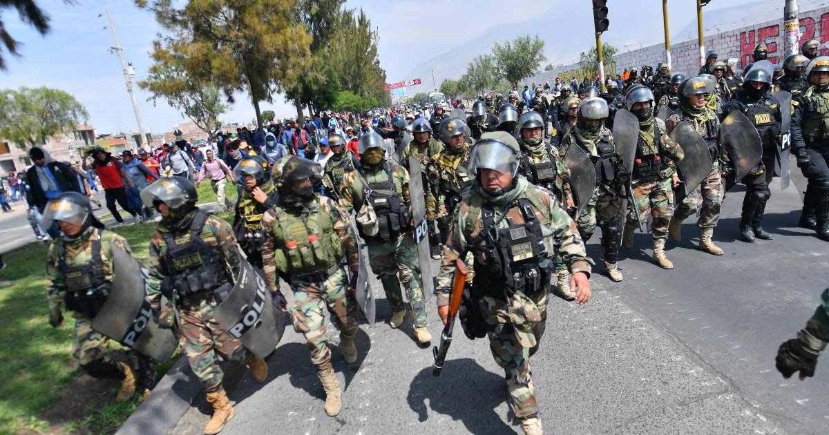 11 / 13En Arequipa, segunda ciudad del país, los militares custodiaban locales públicos y el aeropuerto internacional -que los manifestantes intentaron tomar el lunes- para evitar actos de vandalismo.