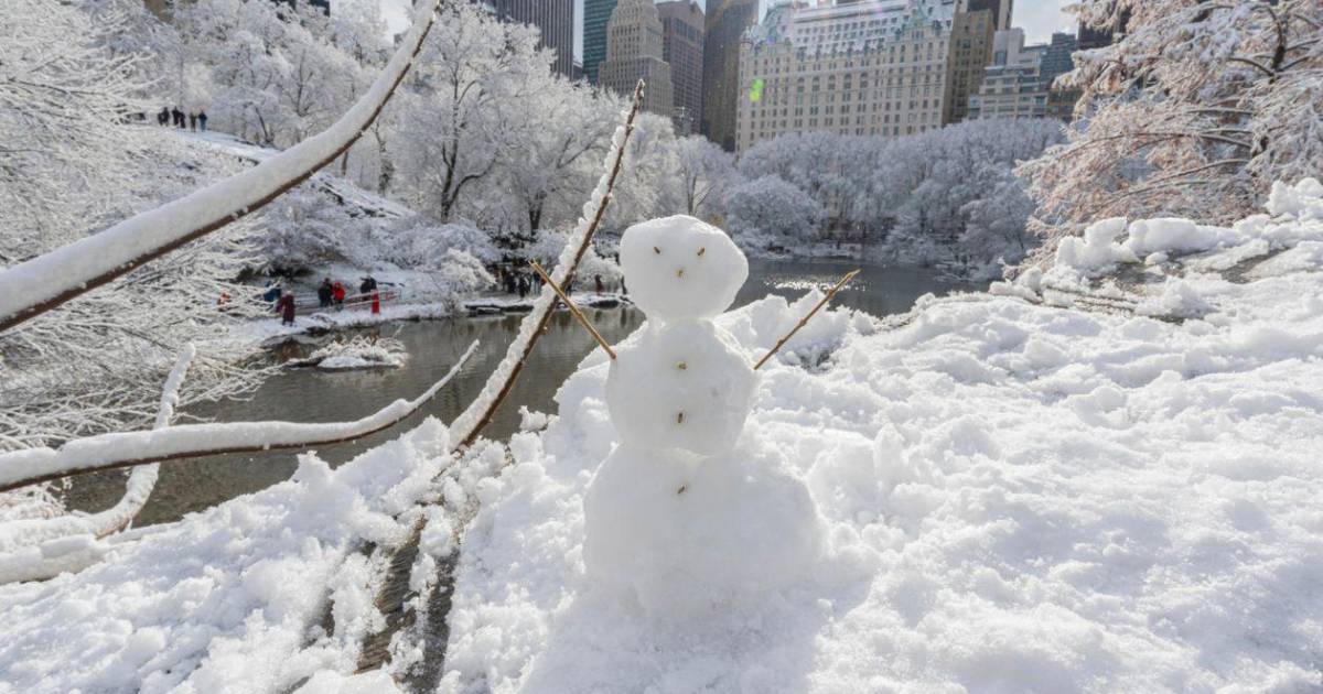 Vista de un muñeco de nieve en el Central Park durante la primera nevada este domingo, en Nueva York (Estados Unidos).