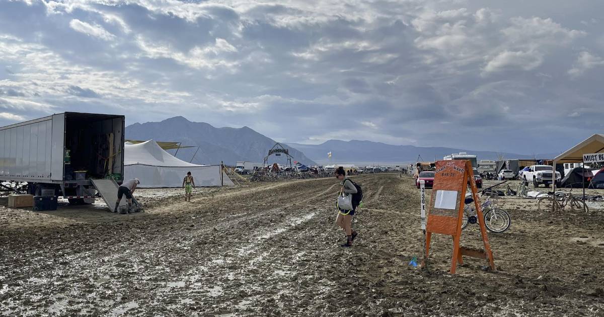 6 / 11En el último informe publicado esta mañana a las 9.00 hora de Nevada (16.00 GMT), los organizadores insistieron en que las carreteras están demasiado mojadas y llenas de barro para abrirlas y que hay “un frente climático incierto” acercándose a Black Rock City, el nombre de la ciudad temporal que se construye cada año para albergar el festival.