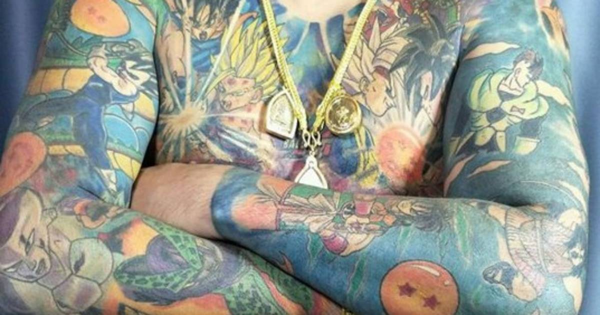 4 / 13Los tatuajes de Kranseen incluyen la primera serie animada de Dragon Ball, luego Dragon Ball Z, Dragon Ball GT y Dragon Ball Súper. -