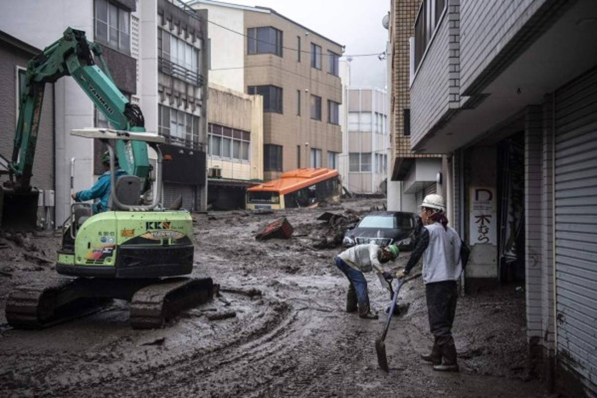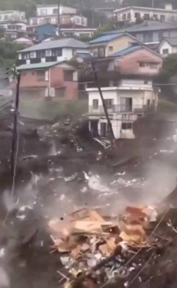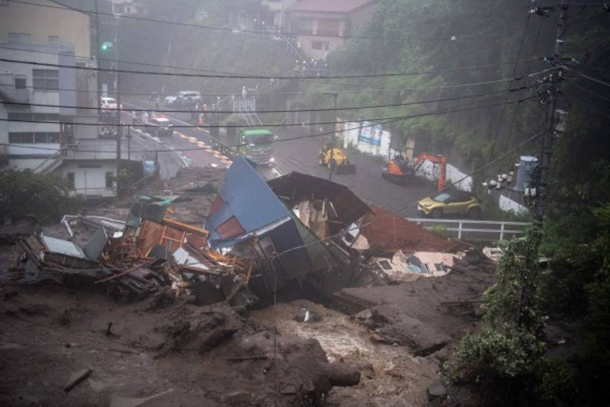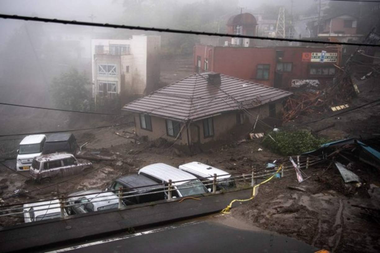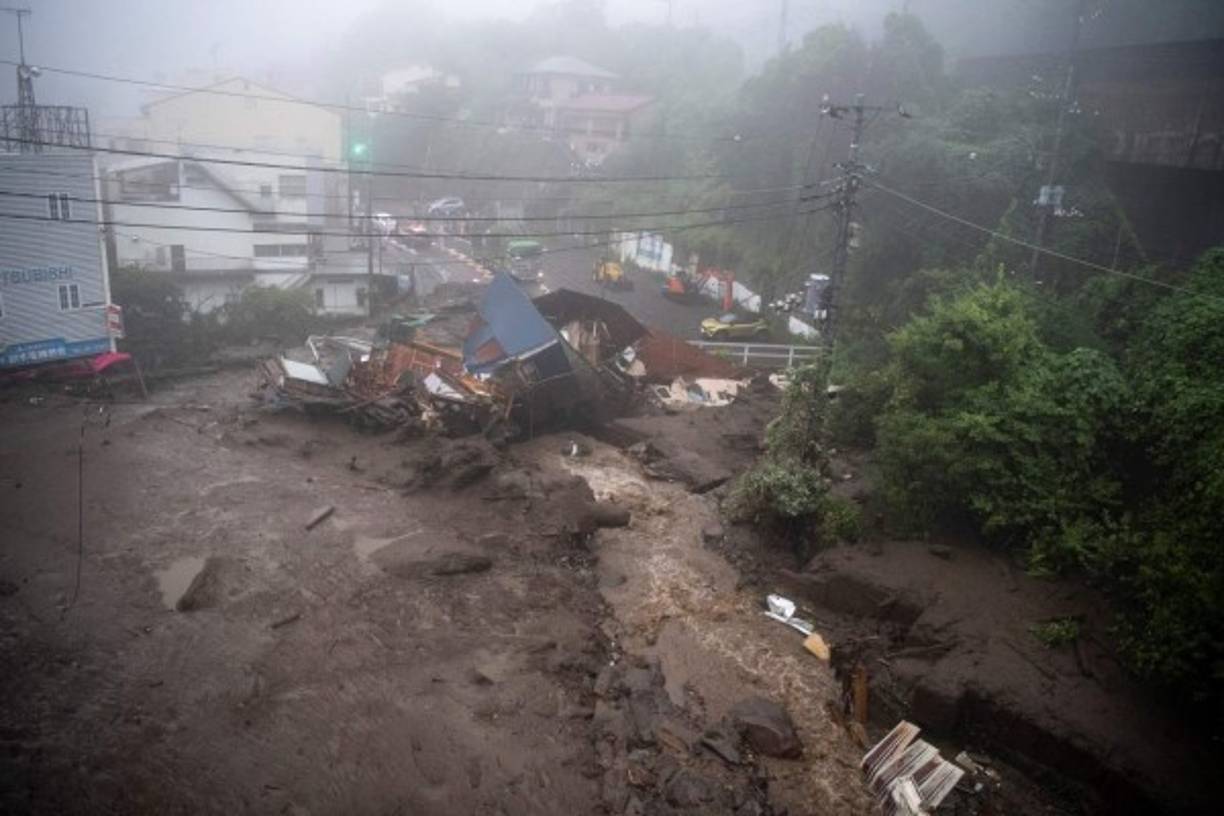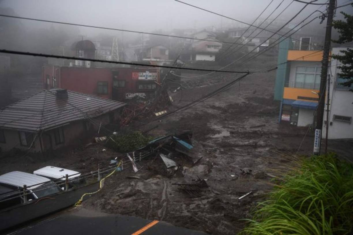 2 / 14'Debido a la acción de lluvias torrenciales, el terreno cedió y saltó la avalancha (...) A su paso barrió casas y habitantes' y cortó una carretera nacional, dijo a la prensa del gobernador del departamento de Shizuoka, Heita Kawakatsu. -
