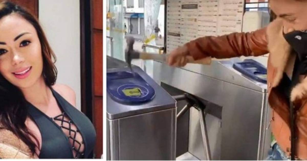 4 / 13La Fiscalía mostró videos grabados por la influencer en los que se le observa destruir las estaciones del TransMilenio, en Bogotá, en noviembre de 2019. -