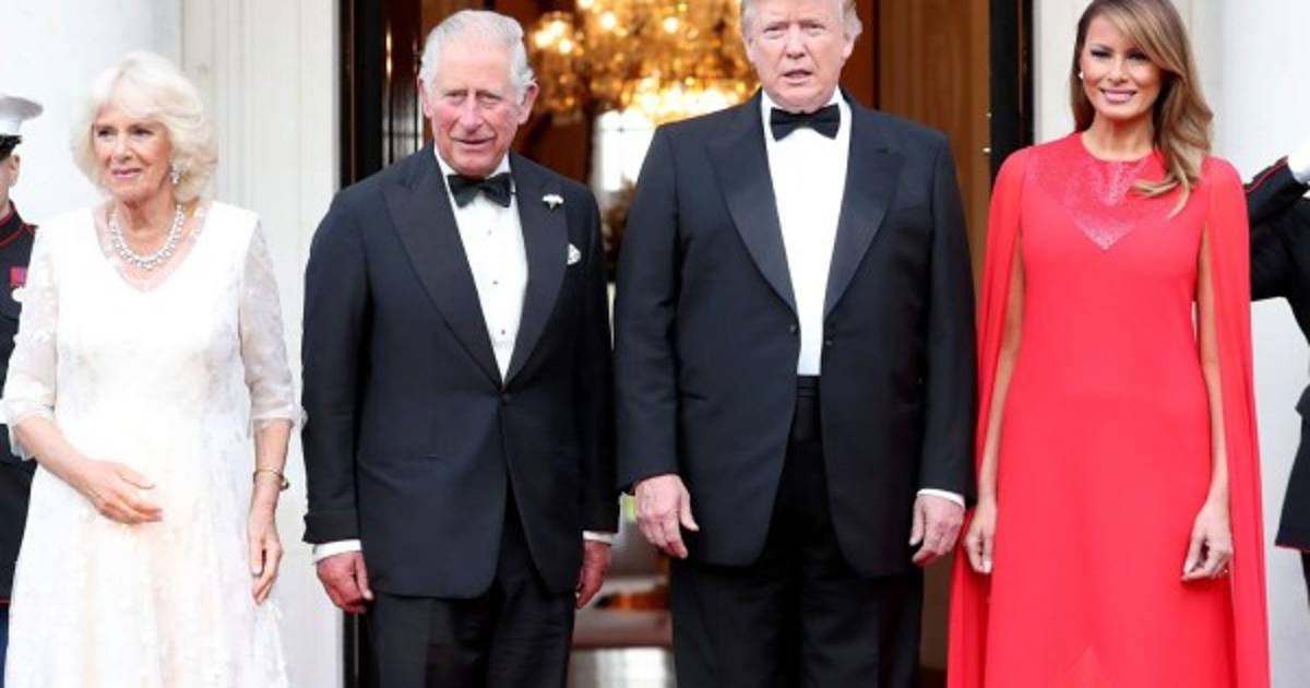 2 / 17US President Donald Trump (L) and US First Lady Melania Trump wait to greet Britain's Prince Charles, Prince of Wales and his wife Britain's Camilla, Duchess of Cornwall, ahead of a dinner Winfield House, the residence of the US Ambassador, where US President Trump is staying whilst in London, on June 4, 2019, on the second day of the US President's three-day State Visit to the UK. - US President Donald Trump turns from pomp and ceremony to politics and business on Tuesday as he meets Prime Minister Theresa May on the second day of a state visit expected to be accompanied by mass protests. (Photo by Chris Jackson / POOL / AFP) -