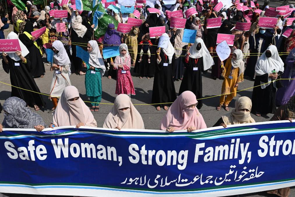 12 / 13En varios lugares se prohibieron las marchas de mujeres, como en Pakistán, donde las autoridades alegaron los “controvertidos carteles” que suelen portar las manifestantes con reivindicaciones sobre el divorcio o contra el acoso sexual.