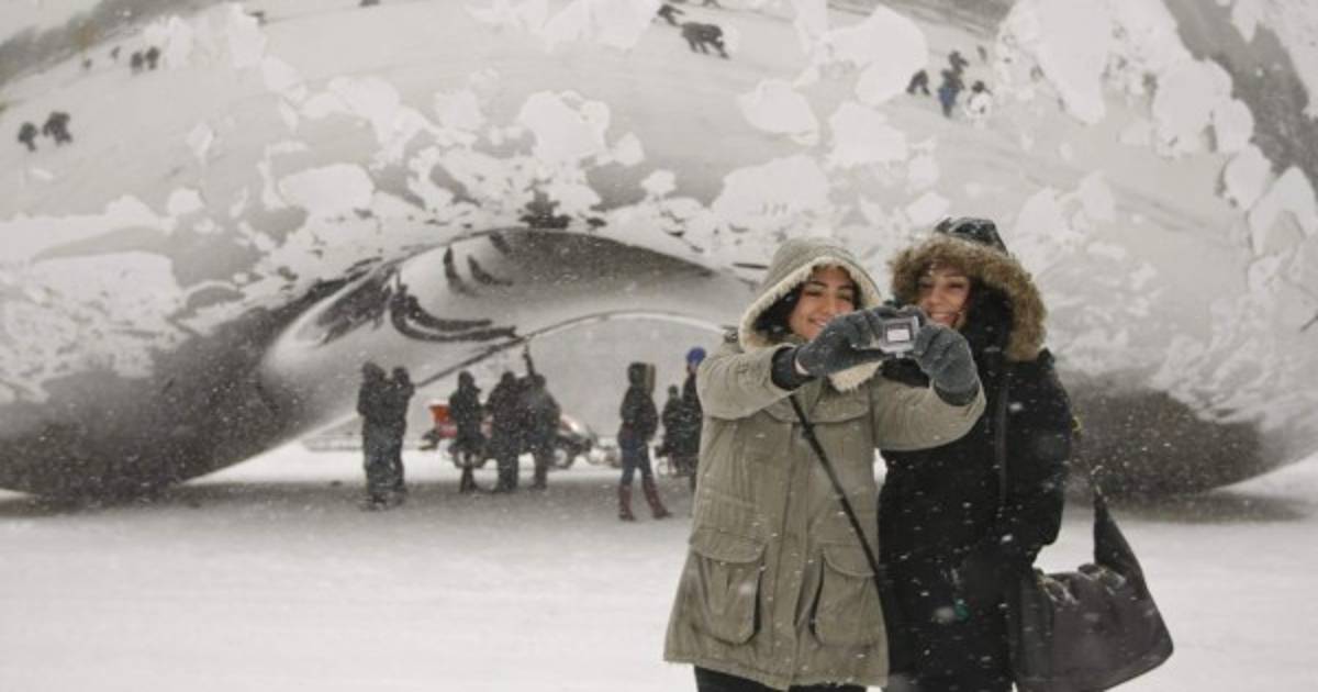 1 / 9La tormenta de nieve rompió récord en Chicago. Dos turistas se toman una selfie frente a la Cloud Gate. -