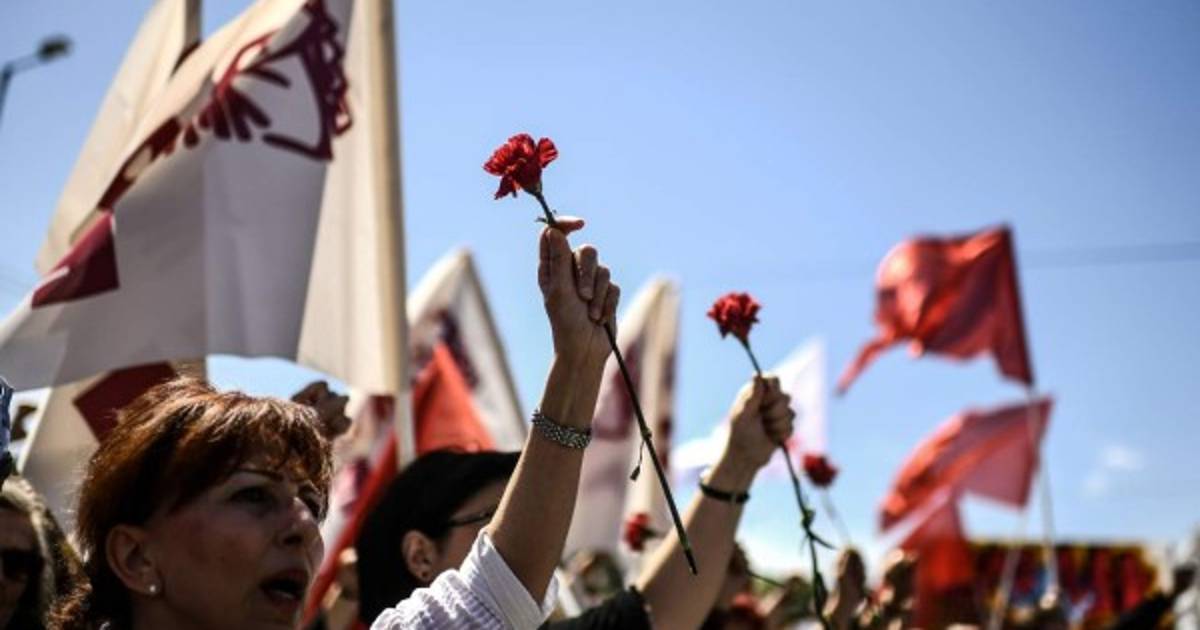 5 / 16Manifestantes gritan consignas durante una marcha en Estambul, Turquía. -