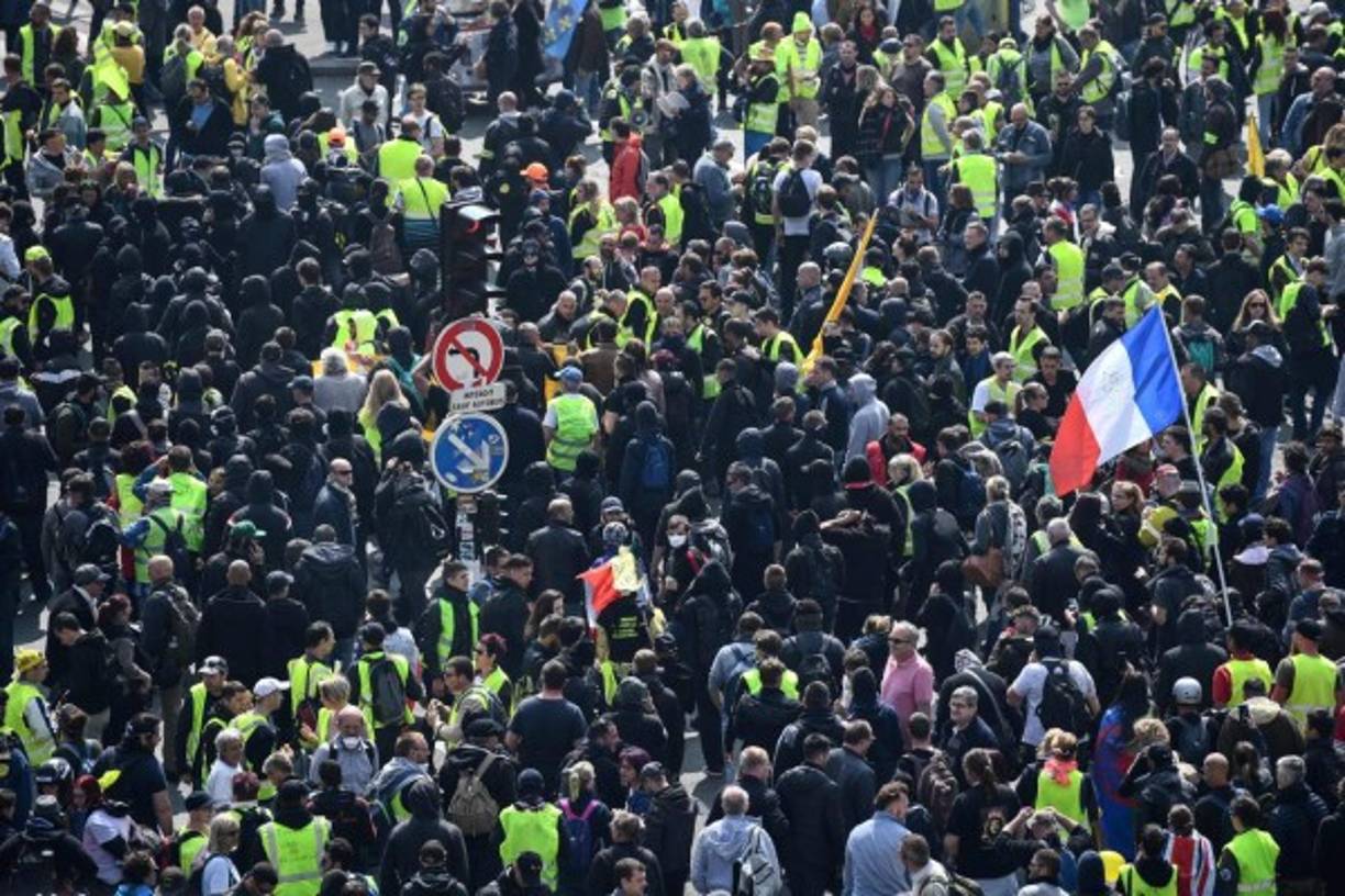 12 / 16Grupo de chalecos amarillo en París, Francia, cuyos miembros protagonizaron graves disturbios este Primero de mayo. -